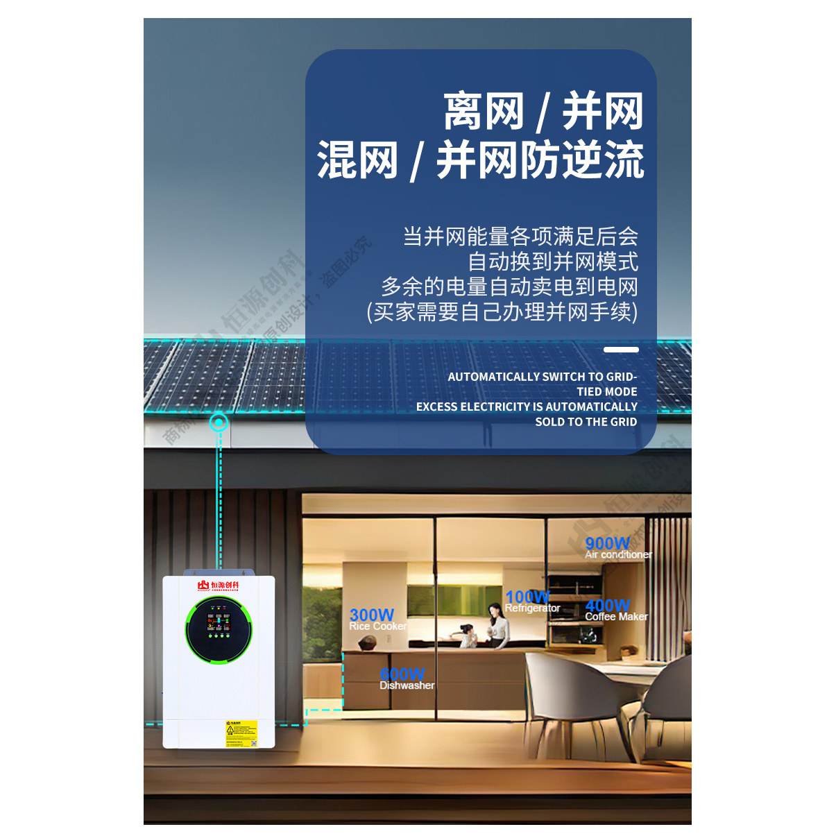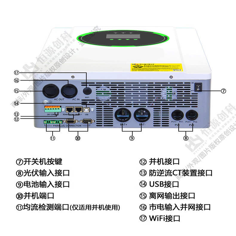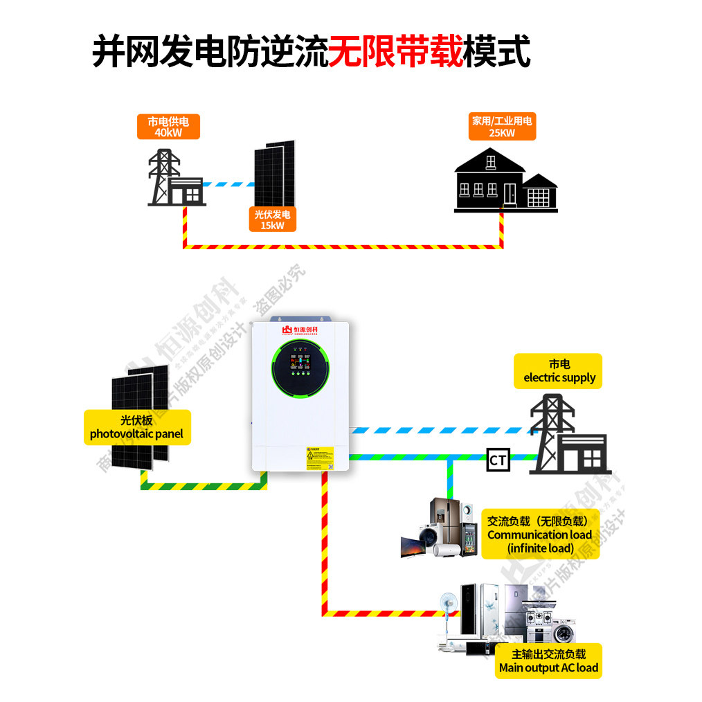 防逆流无限带载混网光伏逆变器10.8KW48V内置150A支持无电池混网