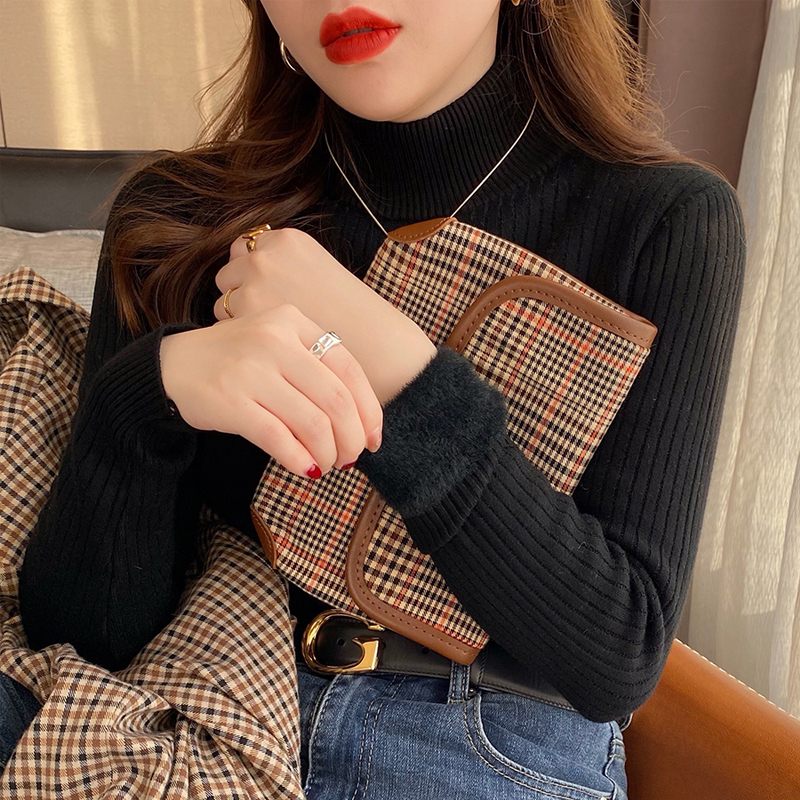 加绒加厚半高领毛衣女2023秋冬新款一体绒内搭别致针织打底衫上衣