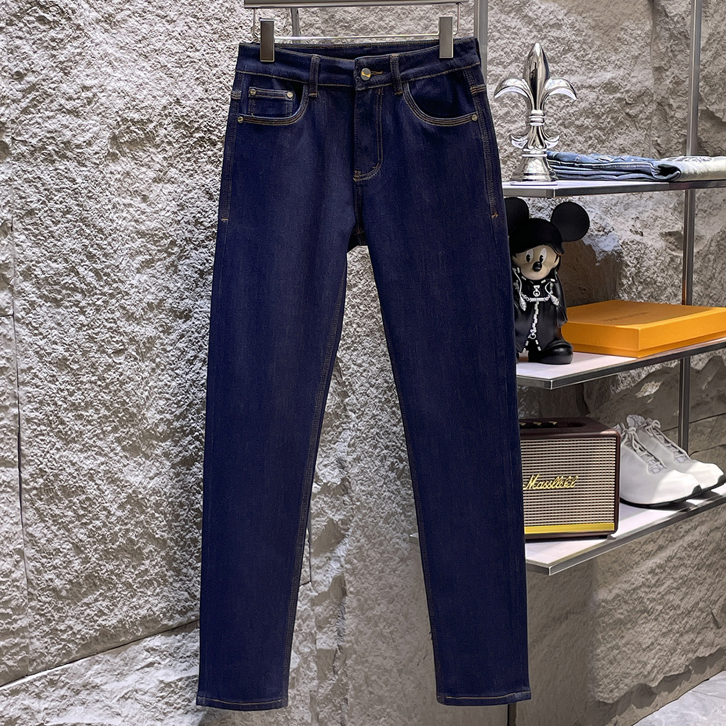 高端不褪色牛仔裤男厚款弹力修身