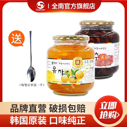 【全南旗舰店】韩国进口全南蜂蜜柚子茶1kg全南蜂蜜大枣茶1kg组合