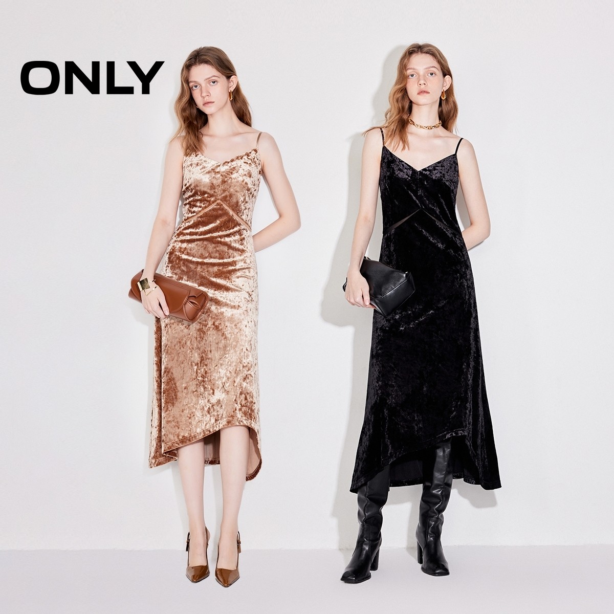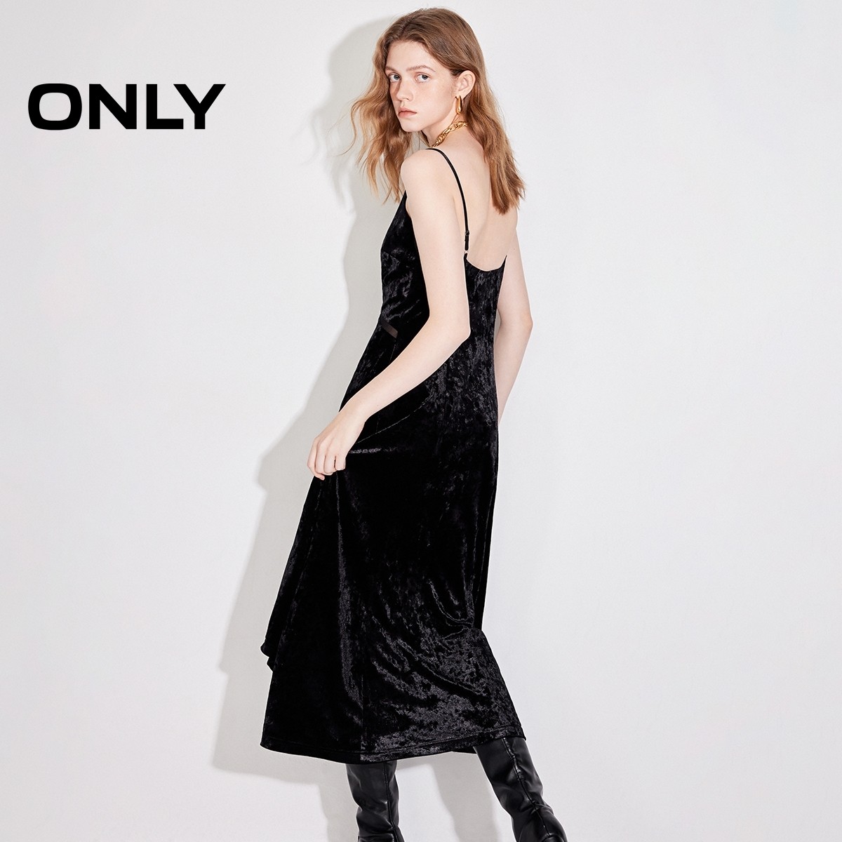 ONLY奥莱2025秋冬新款性感优雅显瘦吊带中长裙丝绒连衣裙女