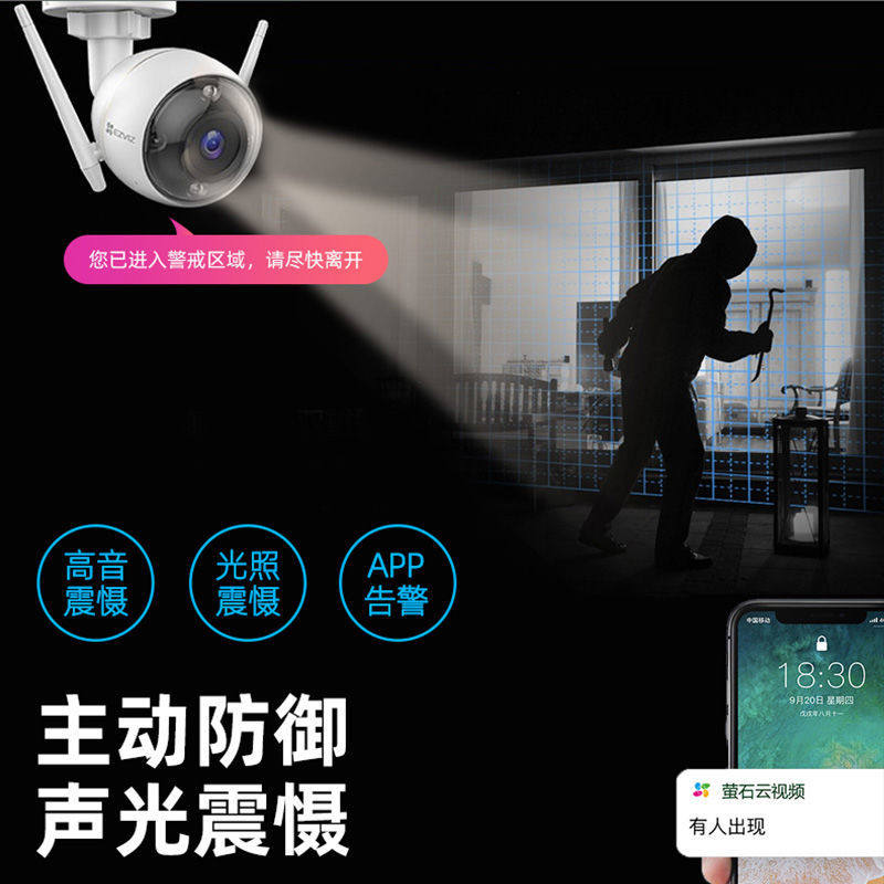 海康威视200/400万监控声光报警告插卡无线wifi对讲网络摄像头