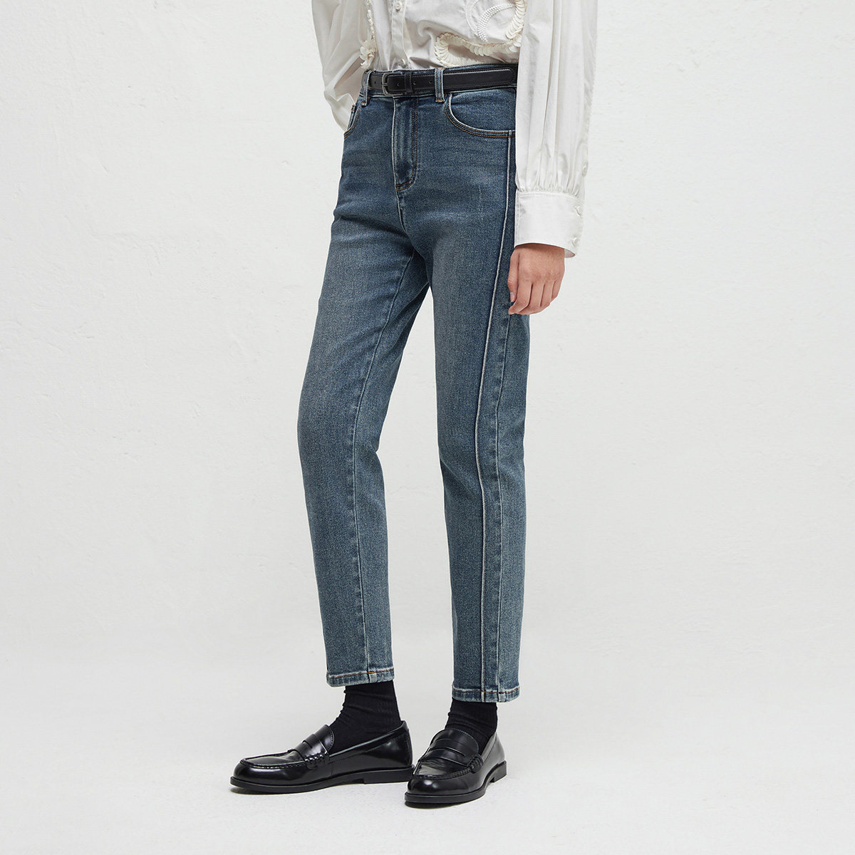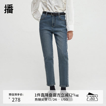 播商场同款24秋蓝色高腰显瘦修身窄款直筒牛仔裤女BDR3KD1854