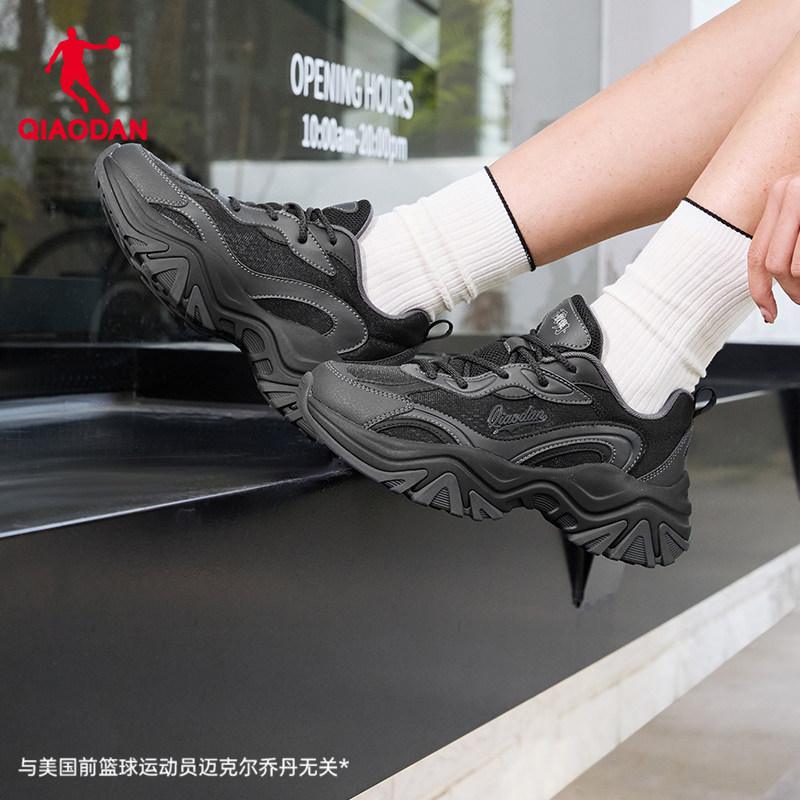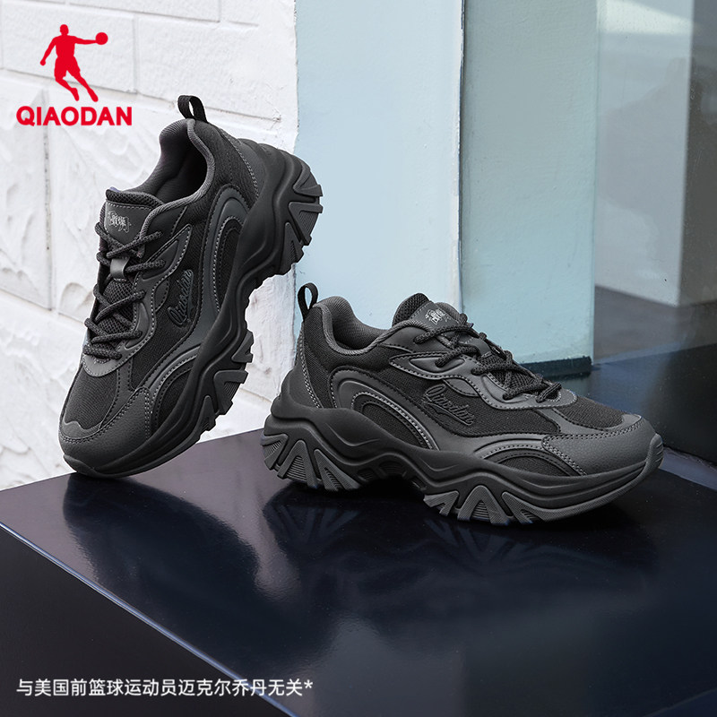 乔丹女鞋厚底增高2025新款潮流老爹鞋官方正品休闲鞋黑色运动鞋女