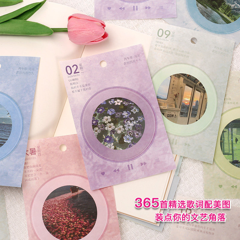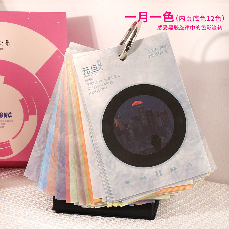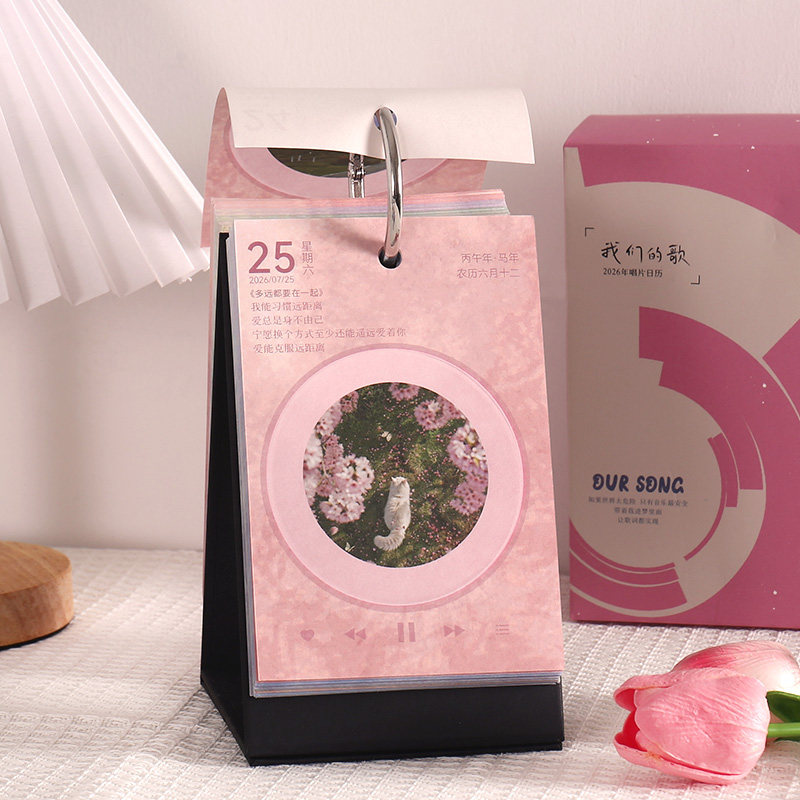 2026年唱片日历风景照片桌面摆件简约可撕翻页创意新年礼物办公室倒计时解压台历定制新款ins风创意年历礼物
