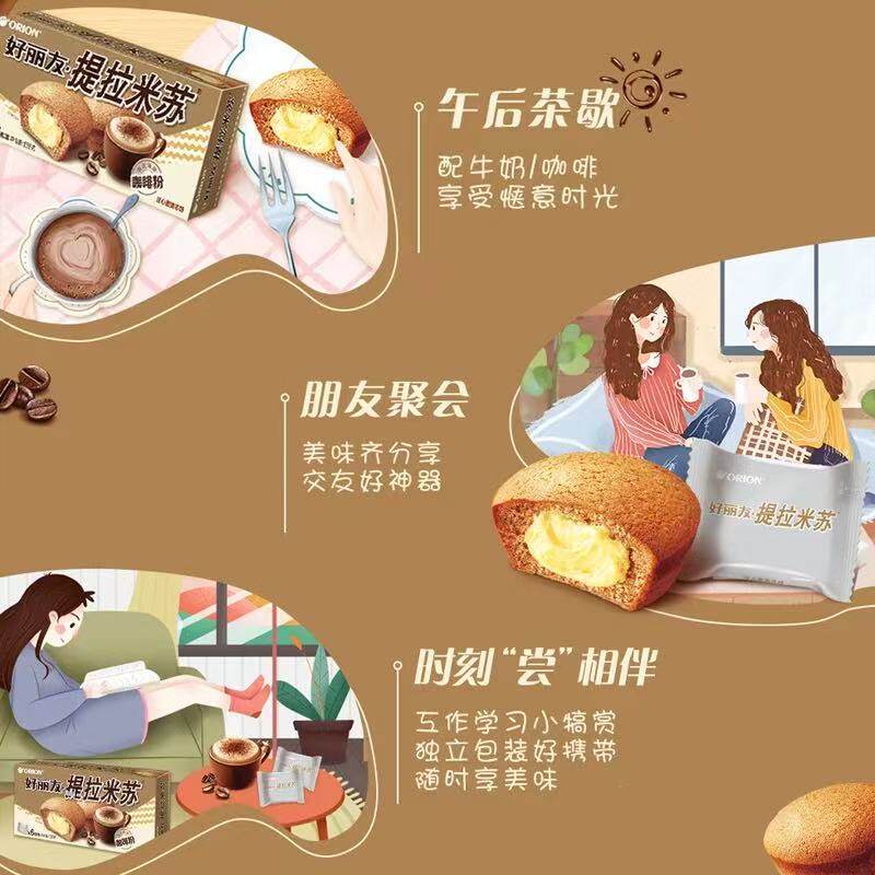 好丽友提拉米苏派原味6枚休闲小零食传统早餐代餐糕点下午茶138g