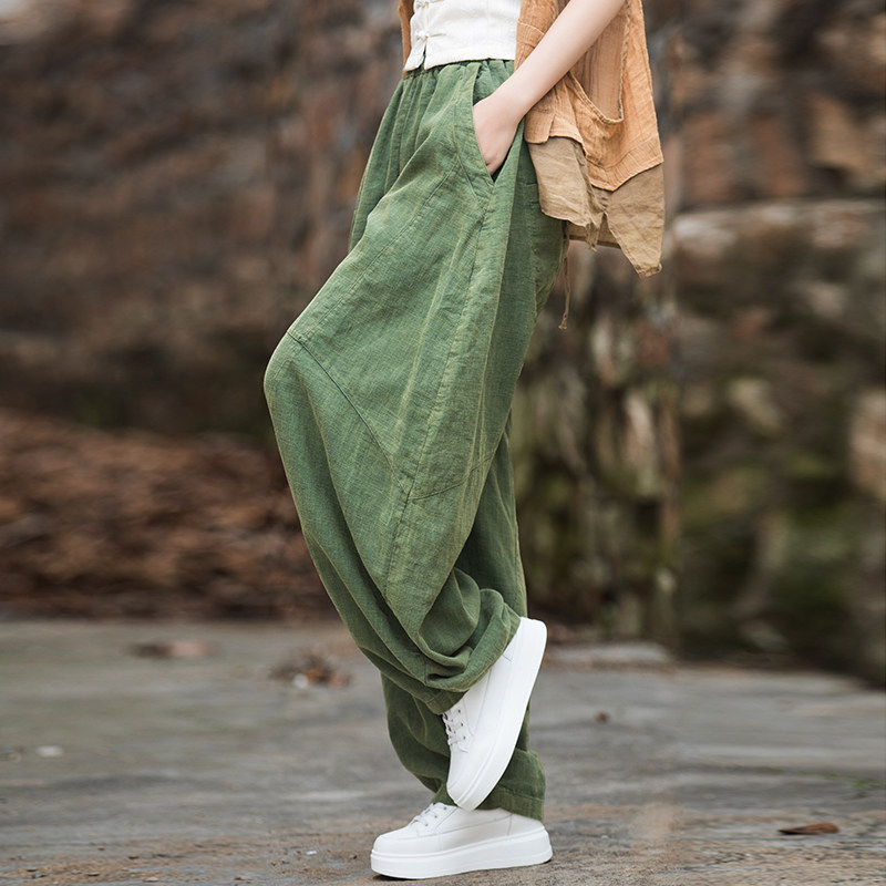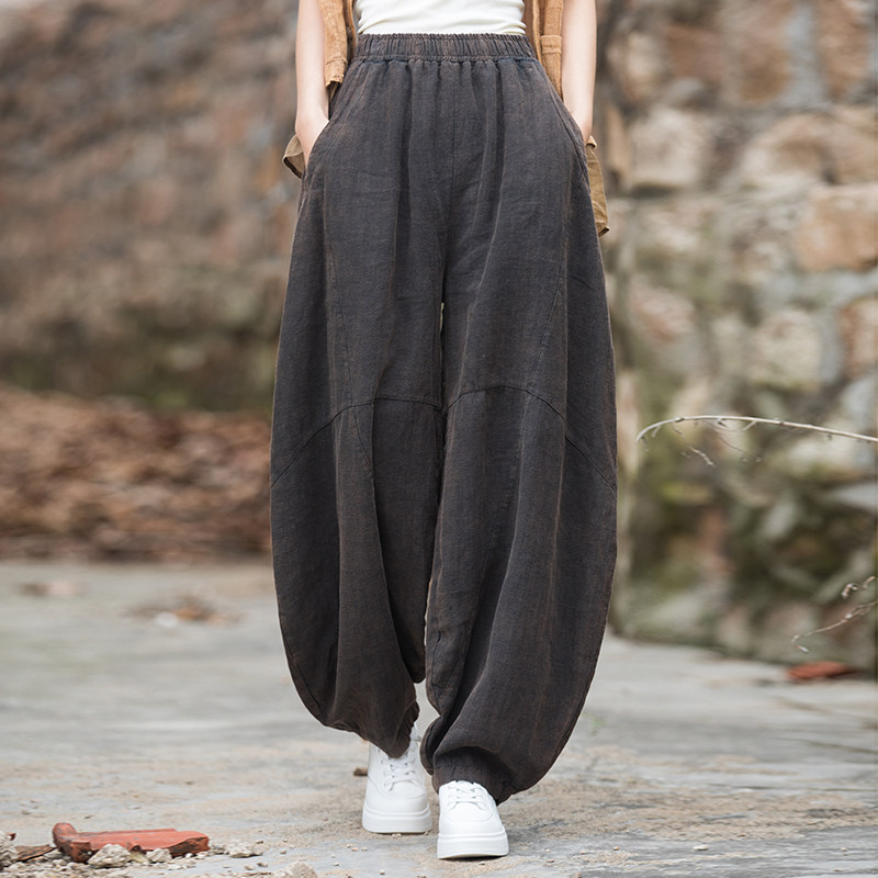 苎麻做旧灯笼裤女新中式棉麻裤子