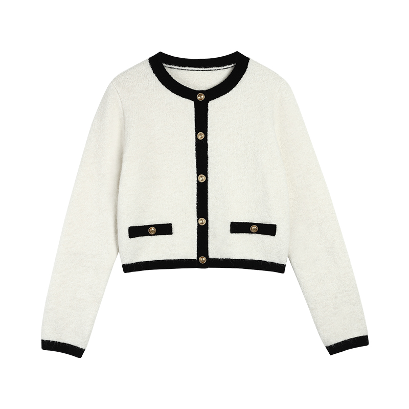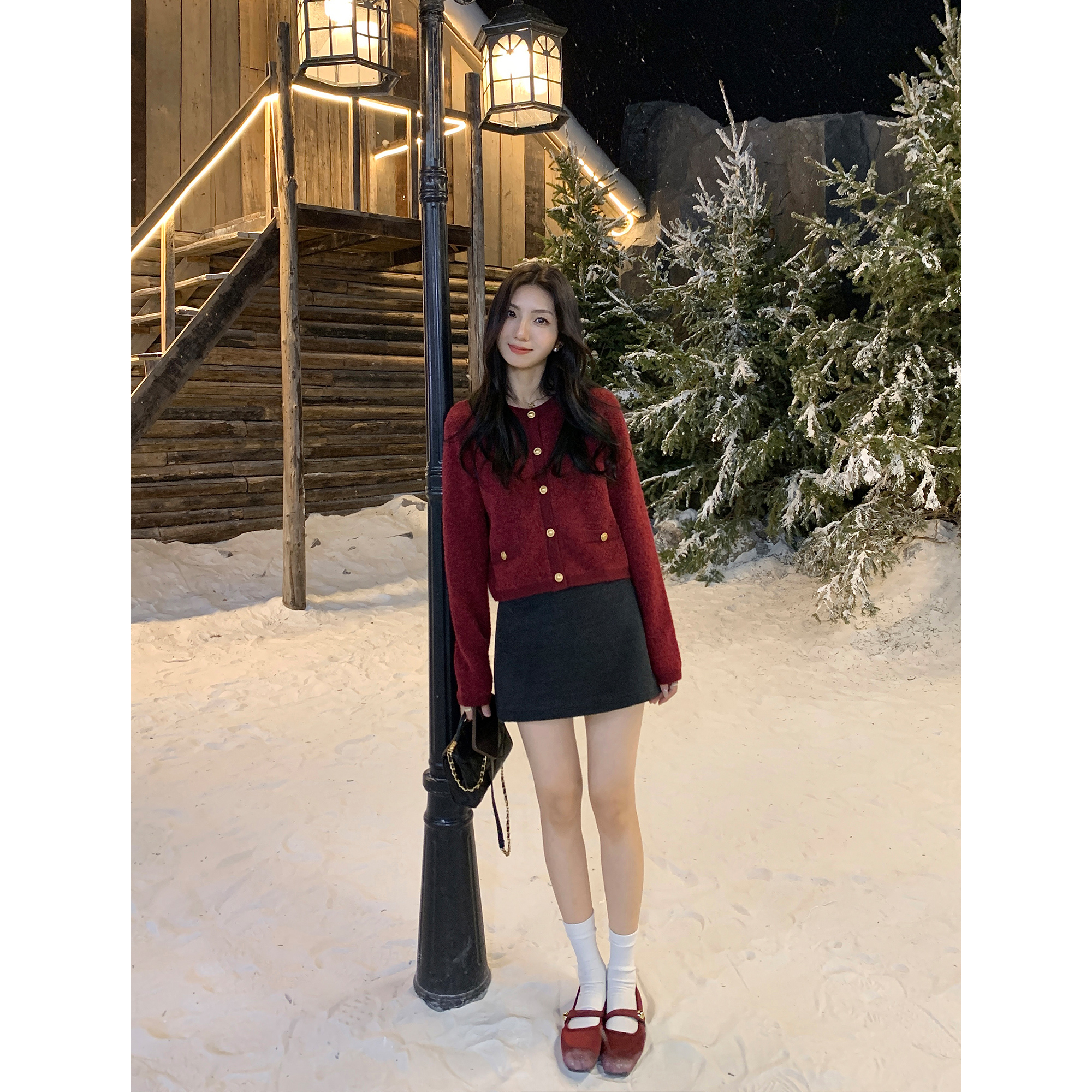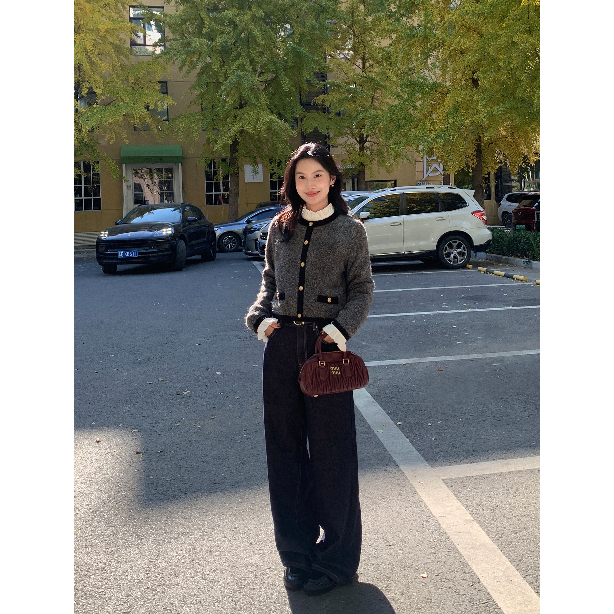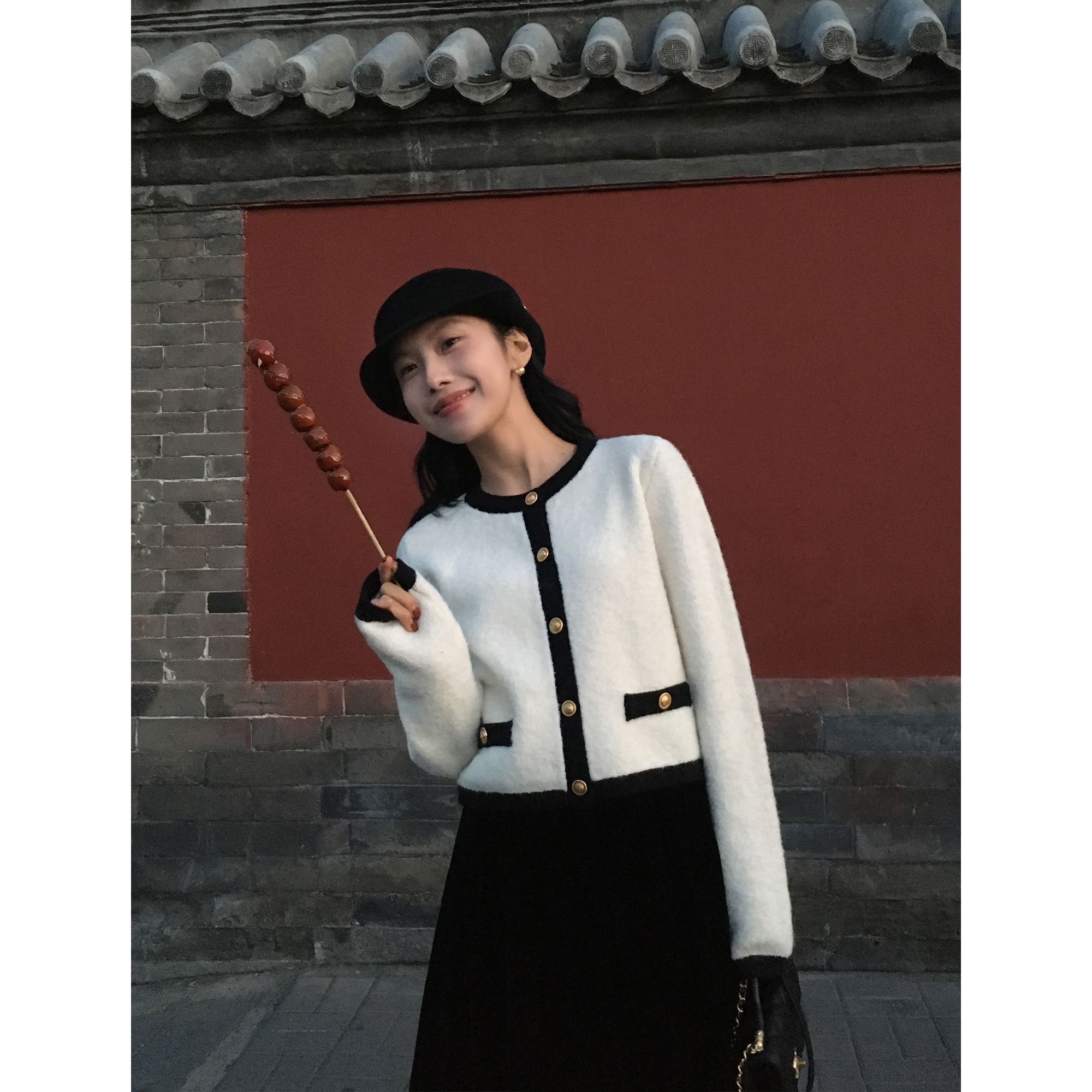 MULVAN短款小香风毛衣外套女秋冬正肩显瘦设计感羊毛针织开衫上衣