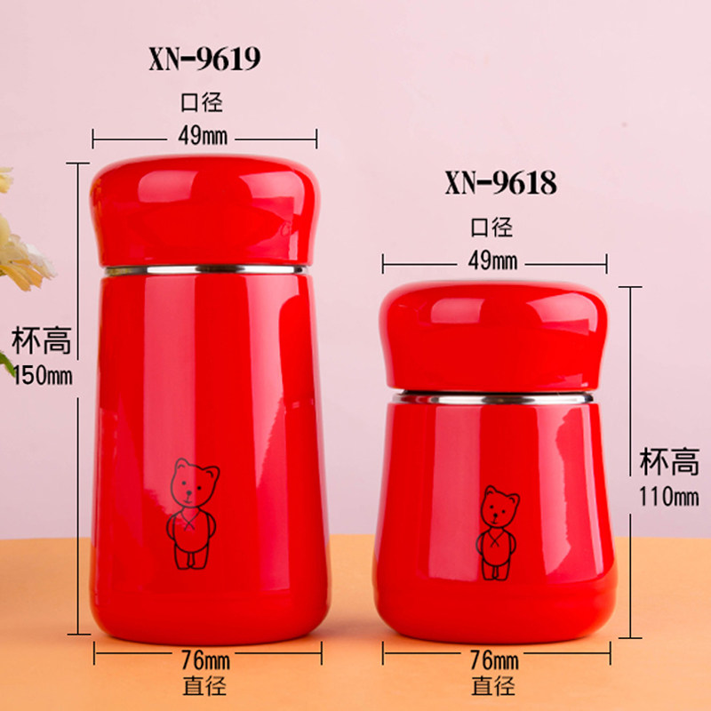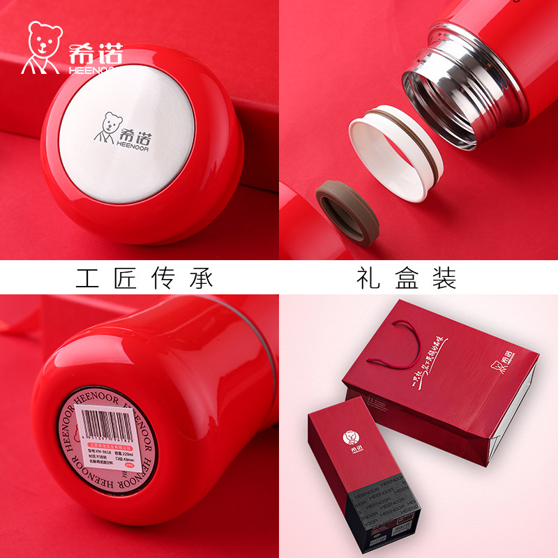 希诺红色保温杯子高级感轻奢高颜值不锈钢大肚迷你杯子外出便携女
