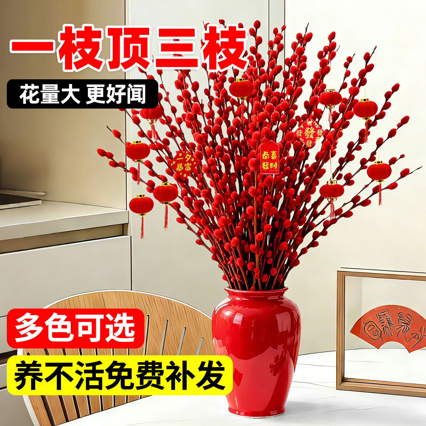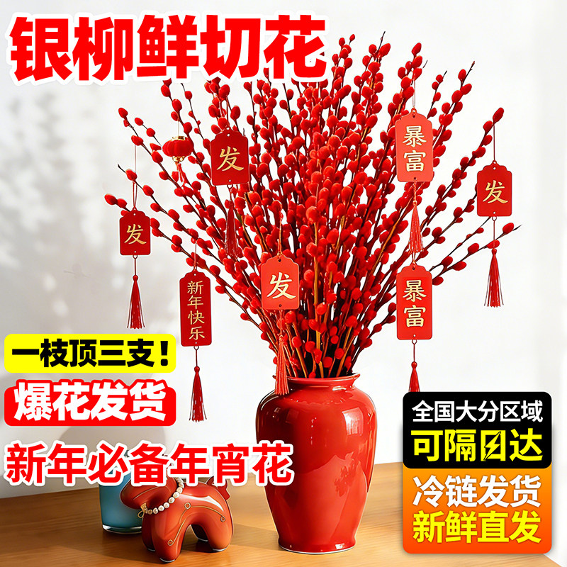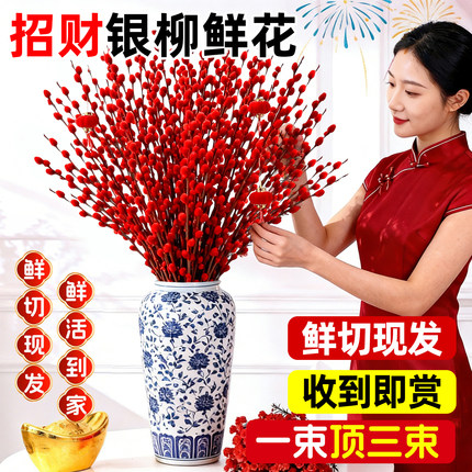 招财银柳鲜枝真花干花客厅旺宅摆件室内花卉植物鲜花绿植马年宵花