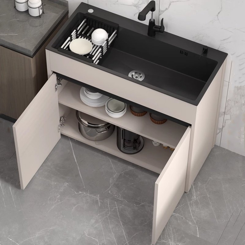 不锈钢户外水槽大洗碗池厨房洗菜盆一体柜黑色家用落地式橱柜水池