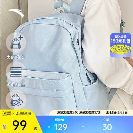 安踏双肩包学霸包学生电脑包中学生大学生大容量背包书包初中女生