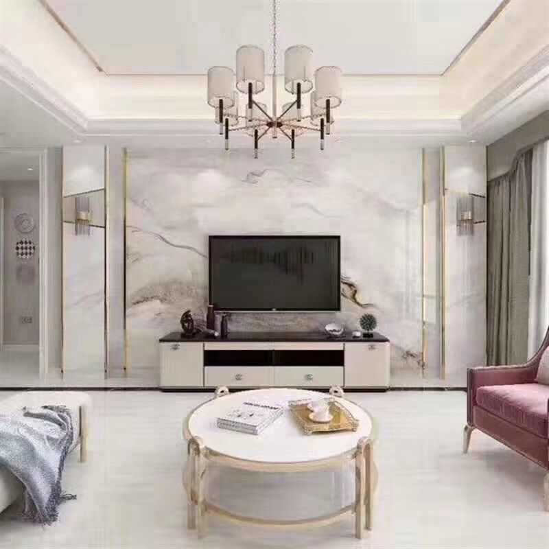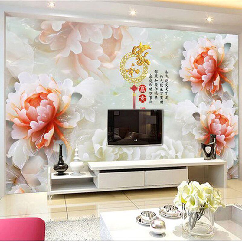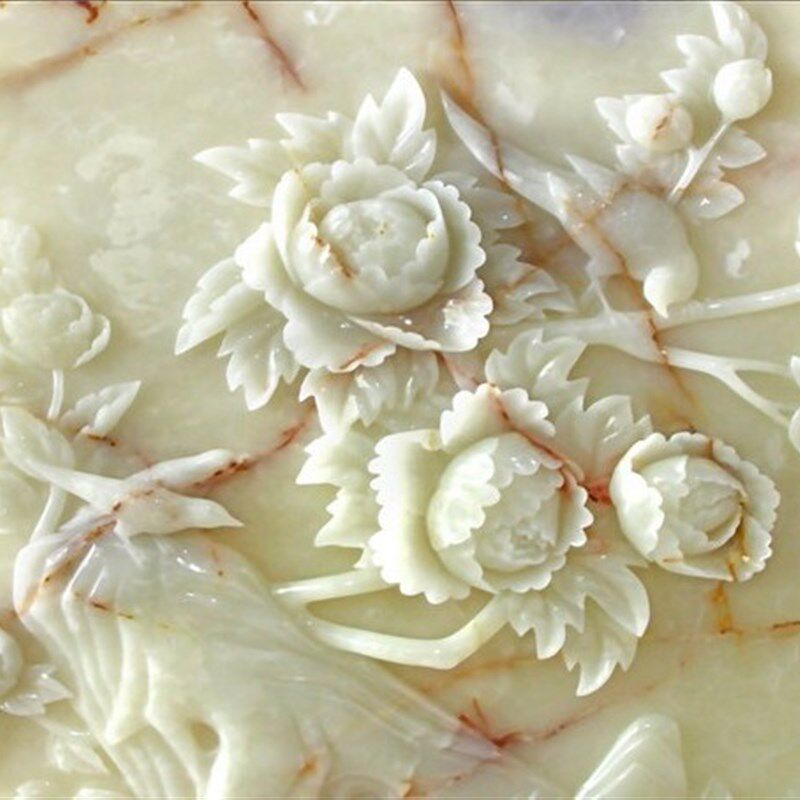 彩雕玉雕瓷砖岩板背景墙客厅沙发电视玄关餐厅卧室牡丹 家和富贵