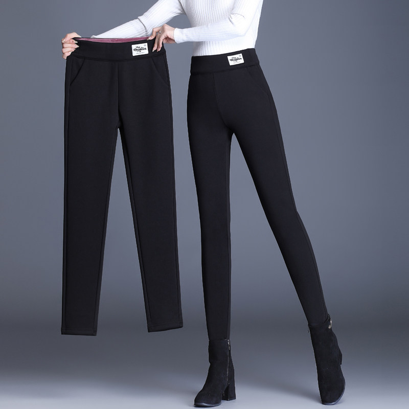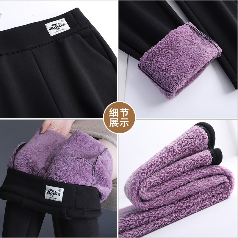 秋冬加绒打底裤女外穿羊羔绒裤子