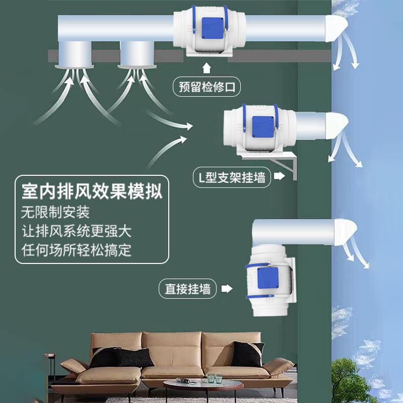 管道风机抽风机6寸8寸强力静音厨房换气扇排气扇排风扇工业大功率