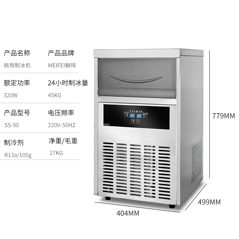 meifei制冰机商用奶茶店蓝光消C毒大容量型酒吧全自动小型方冰块