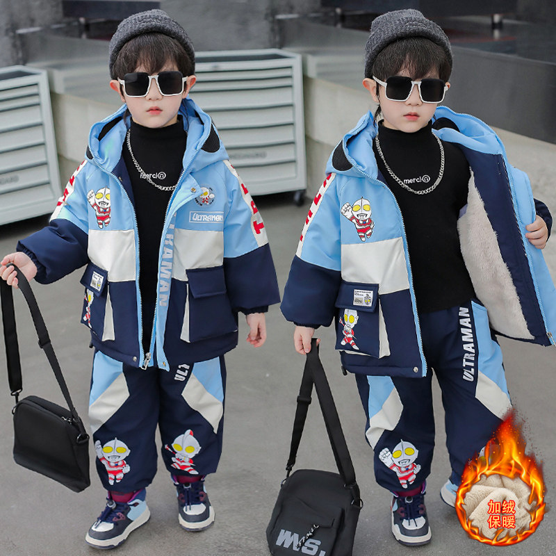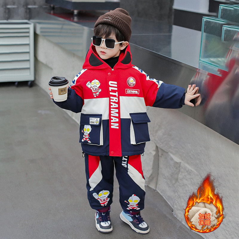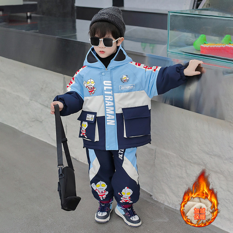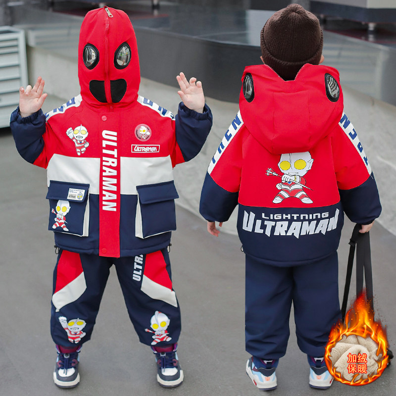 奥特曼衣服男童加绒套装2025新款酷帅儿童小男孩加厚冬装棉服外套