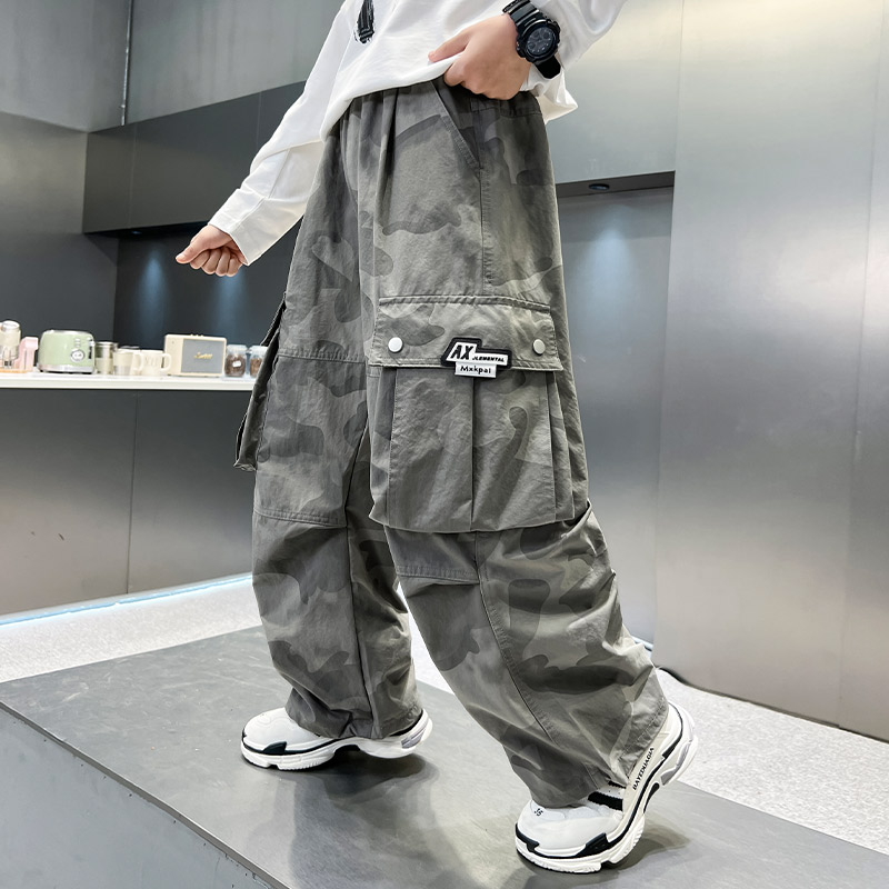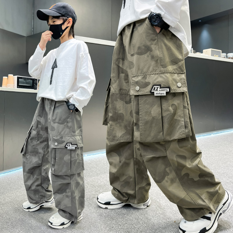 儿童迷彩休闲工装裤男童裤子春秋款薄装季胖孩阔腿新款中大童潮牌
