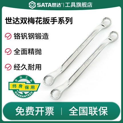 SATA世达双头梅花扳手高强度眼镜睛扳子加长12-13-17-19-22-24mm