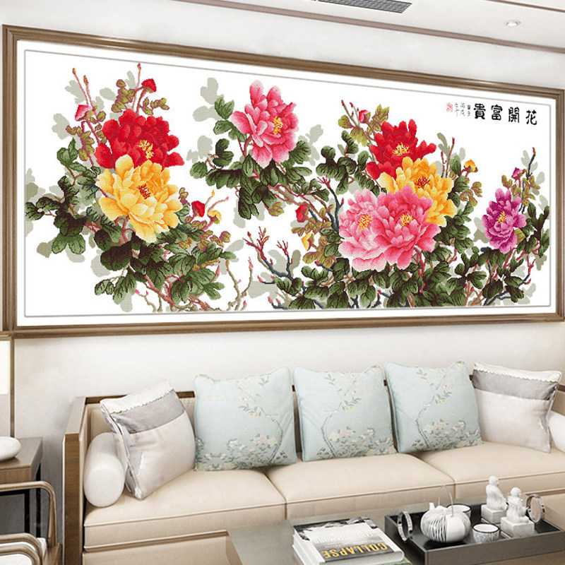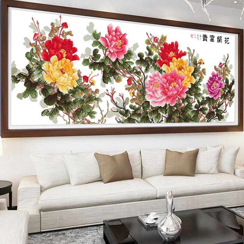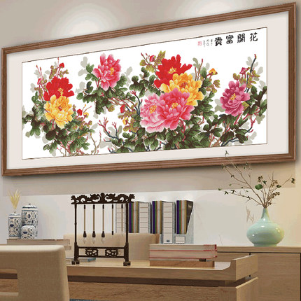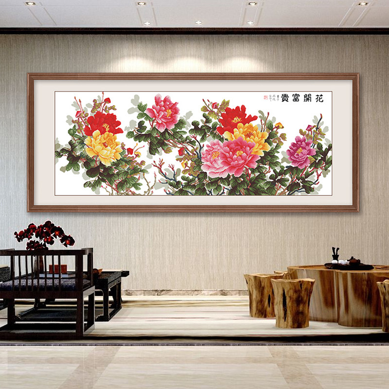 宣绒布钻石画满钻2026新款客厅花开富贵5d钻石绣经典六尺牡丹