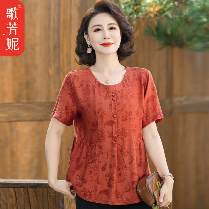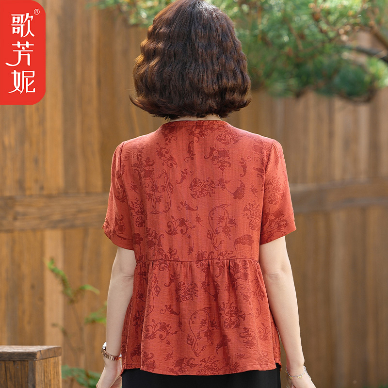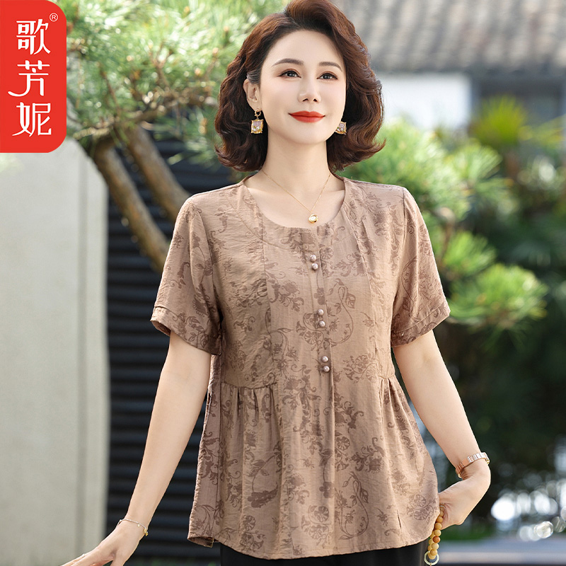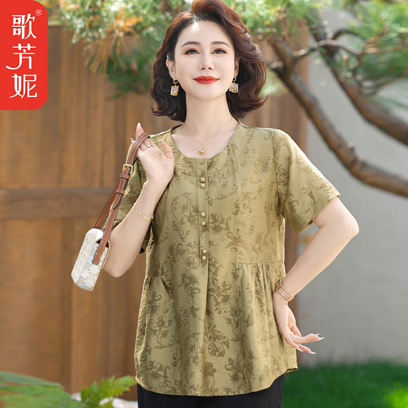中老年女装气质休闲洋气T恤衫2025中年妈妈夏季新中式短袖女上衣