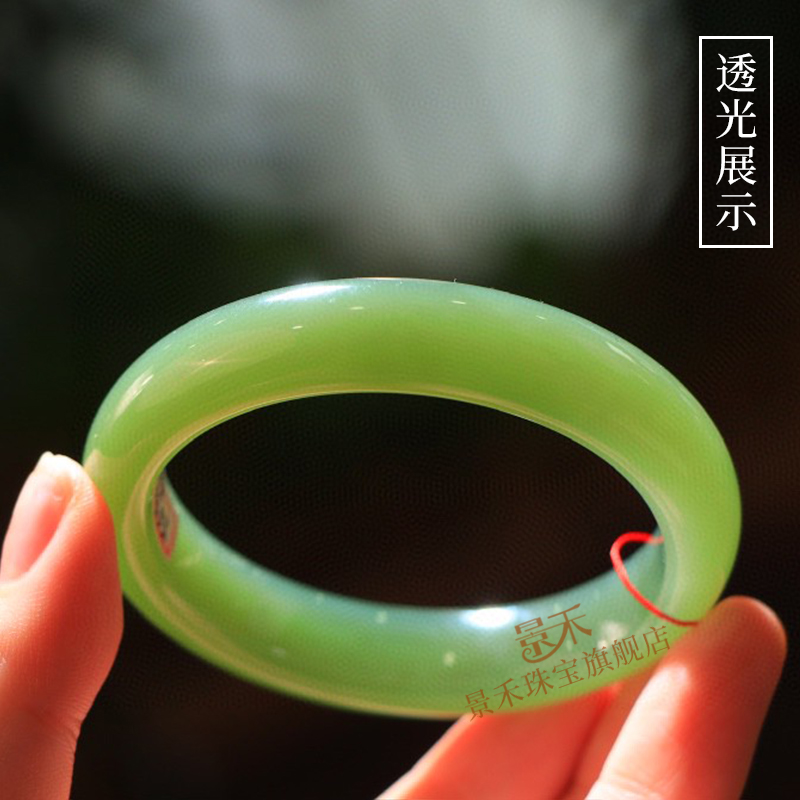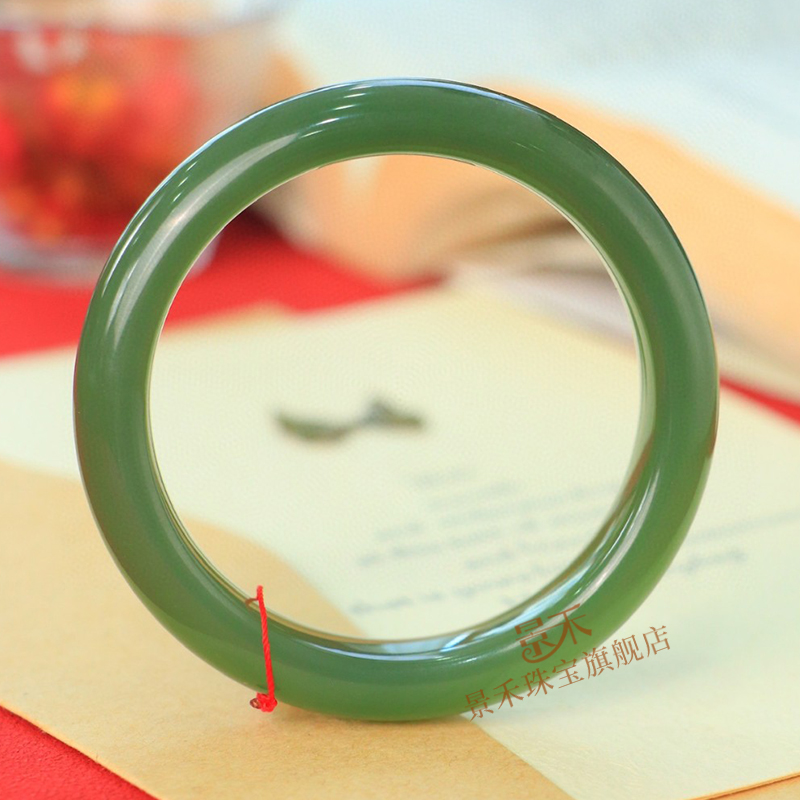 新疆和田玉湖水绿手镯女正品玉镯圆镯子天然玉石青玉妈妈镯