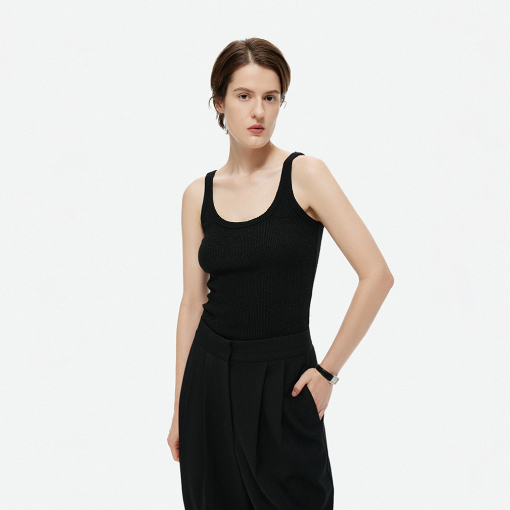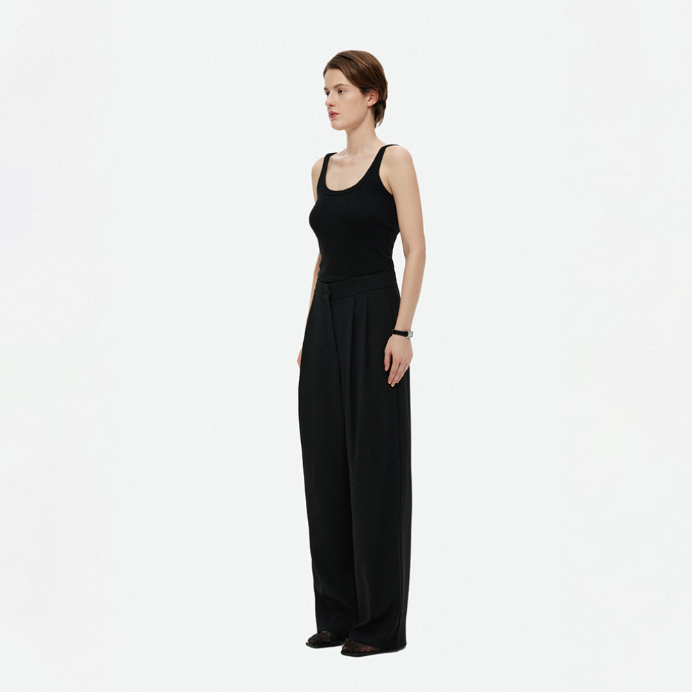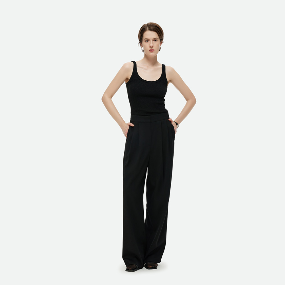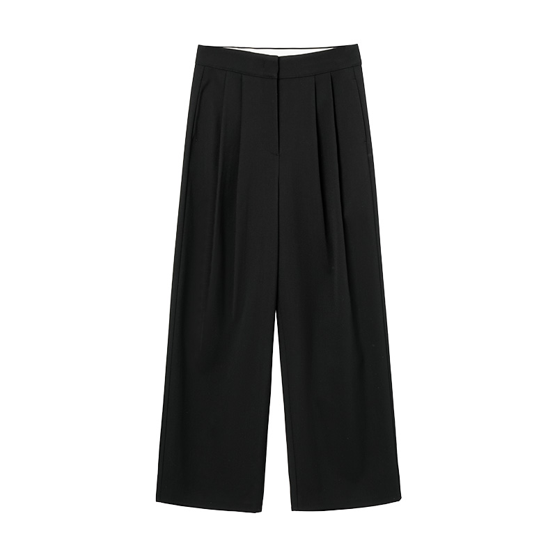 白弓精纺羊毛西装裤女显瘦高腰直筒黑色阔腿长裤子2024年39057