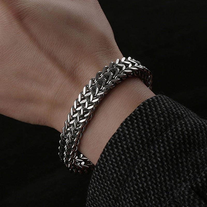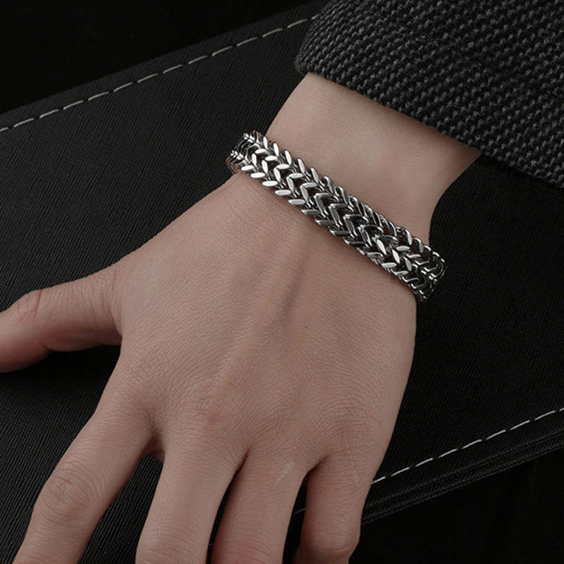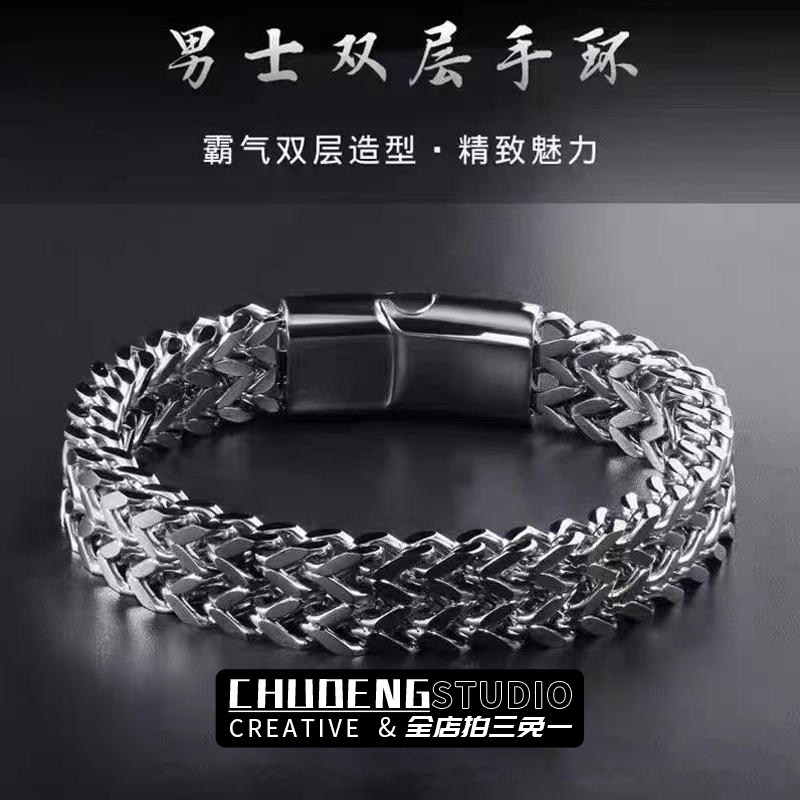 男生双层古巴钛钢手链手环男潮ins个性小众设计配饰品街头高级感