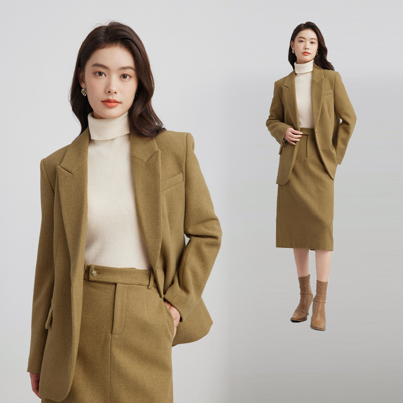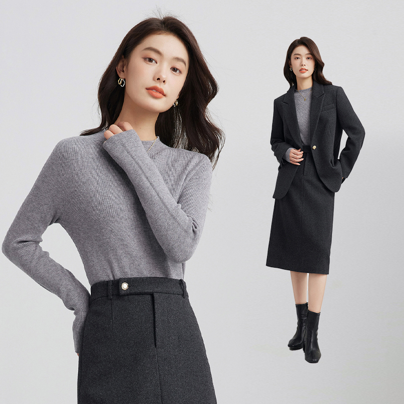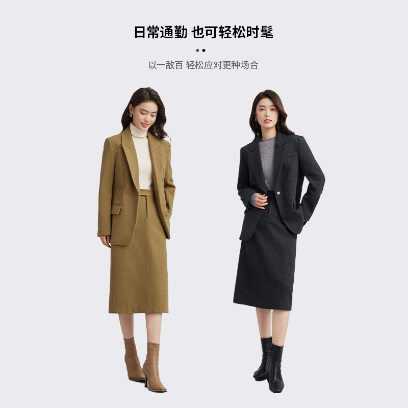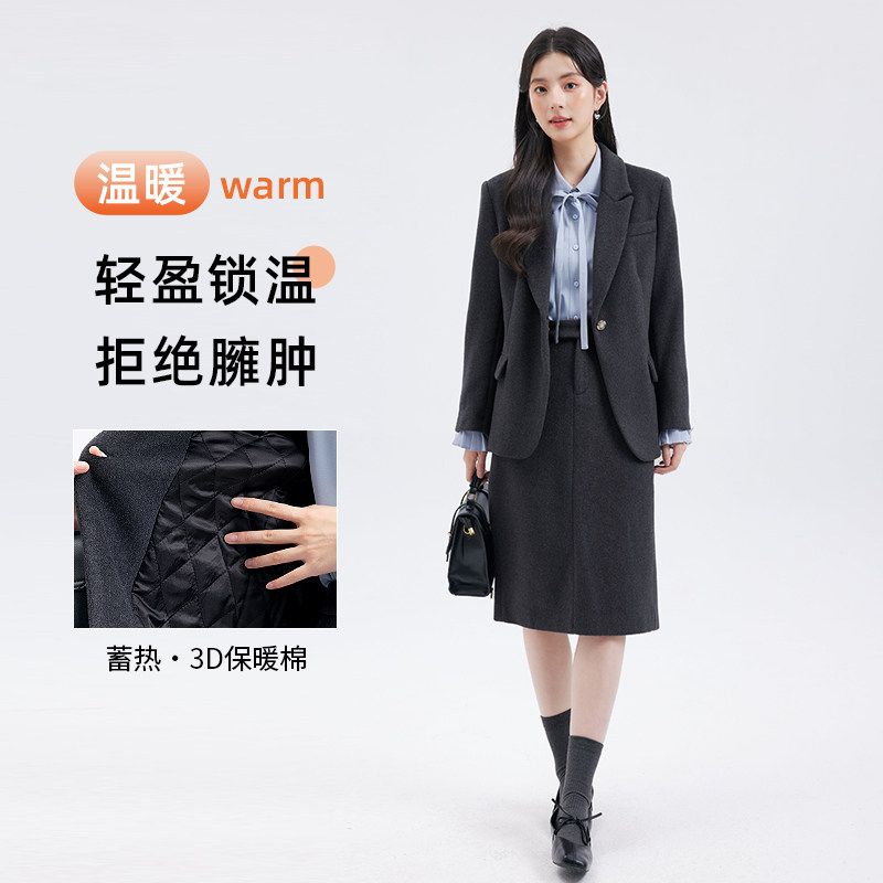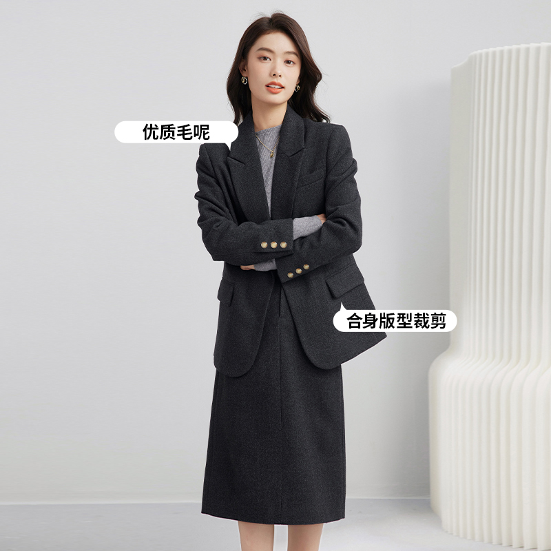 达佳诗教资面试灰色毛呢西装外套女冬正装加厚通勤半裙职业套装女