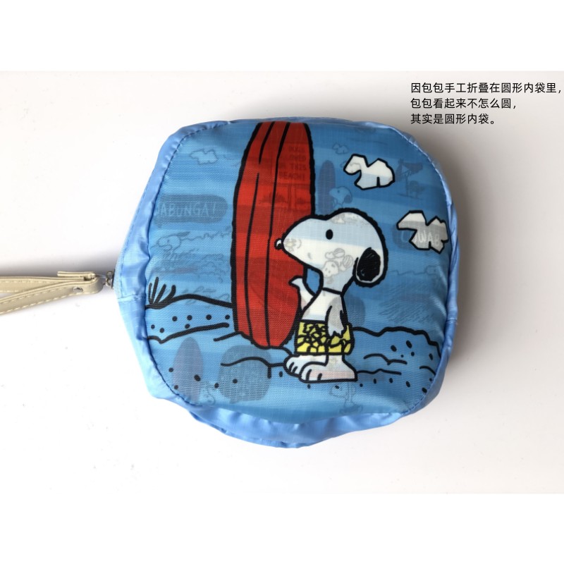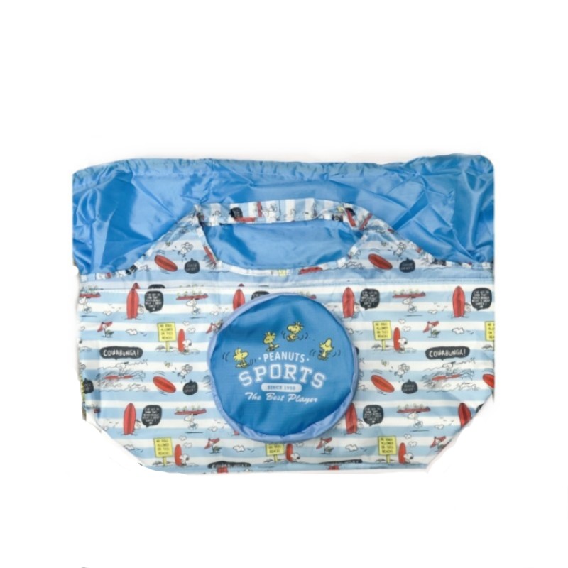 日本新款史努比大容量折叠购物袋抽绳收纳单肩包环保袋野餐旅行包