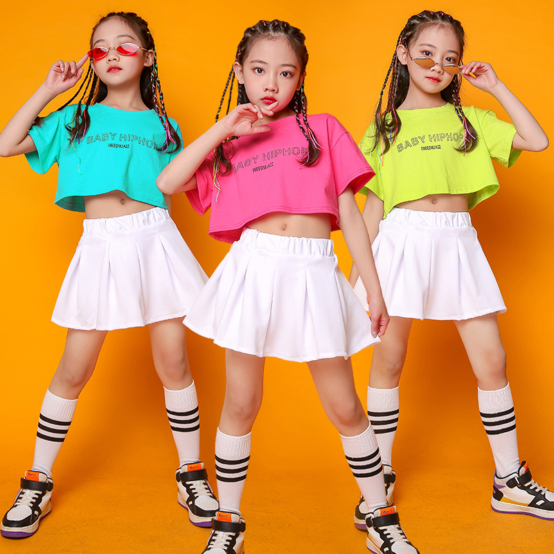 儿童爵士舞演出服糖果色T恤表演服幼儿园小学生运动会啦啦队套装