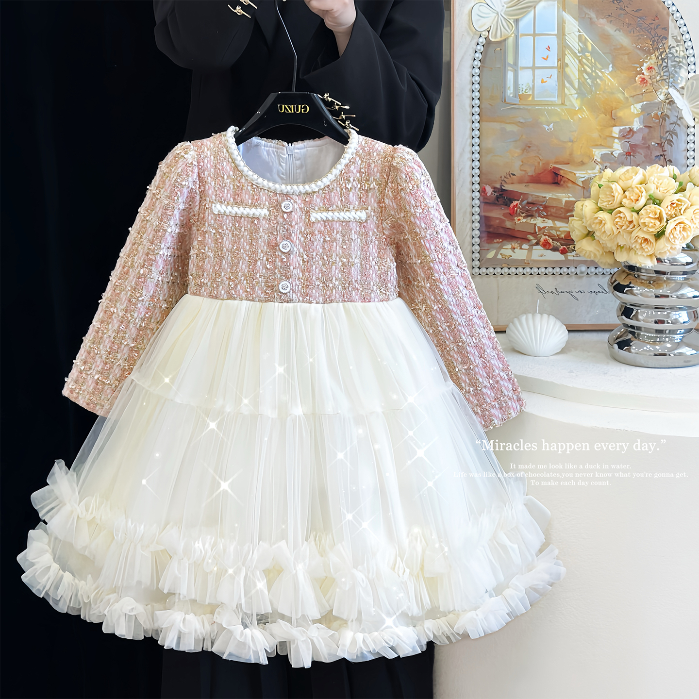 女童秋冬小香风网纱蛋糕连衣裙