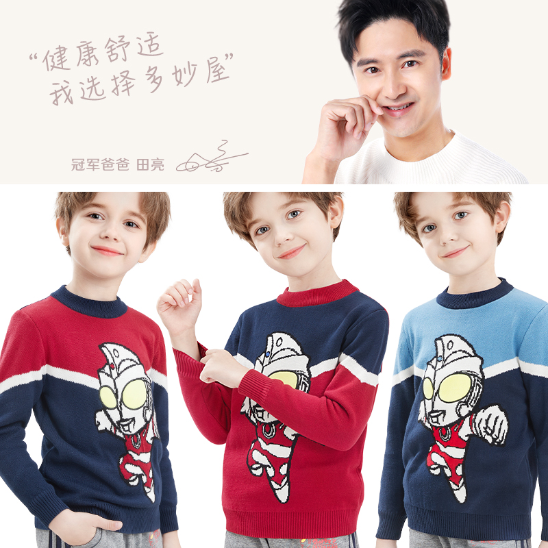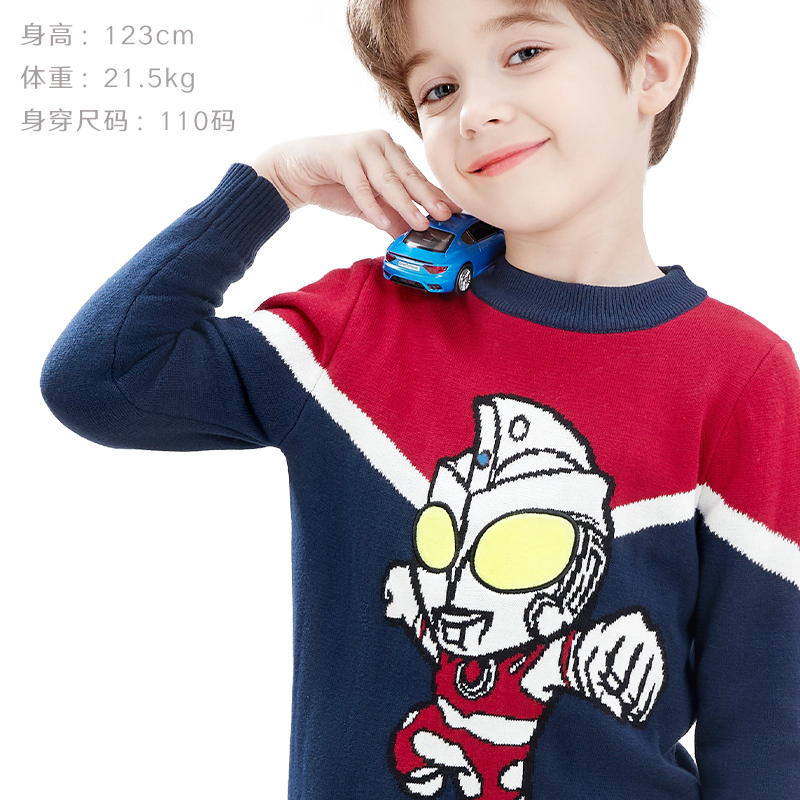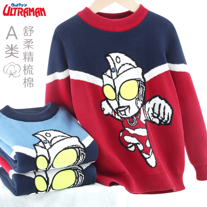 男童毛衣男孩奥特曼秋装儿童纯棉加绒打底衫宝宝上衣多妙屋童装