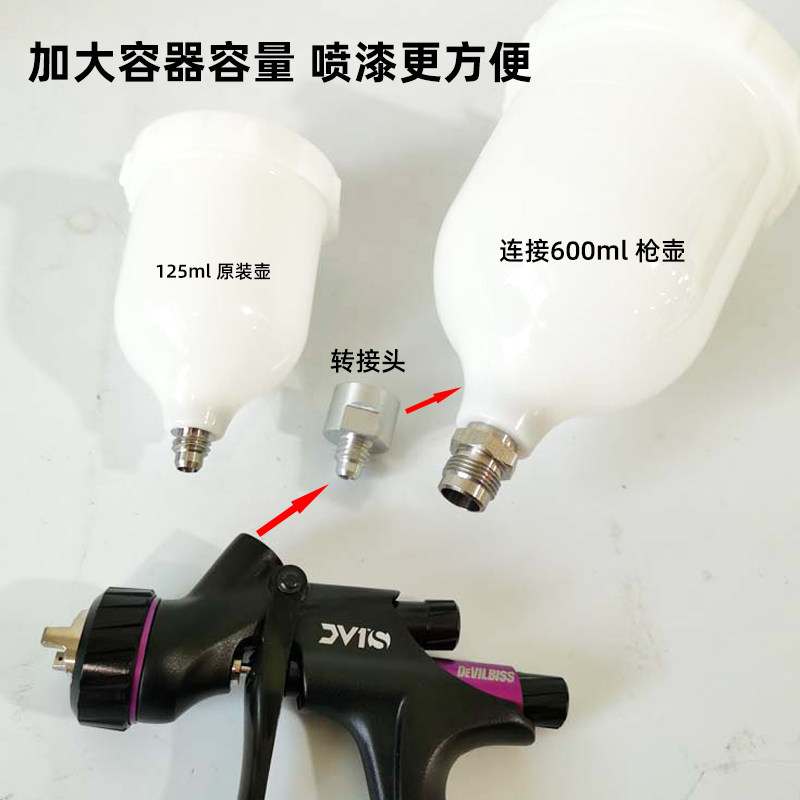 戴维比斯迷你喷枪小壶125ml转大壶600ml转换接头汽车喷枪m10转m14