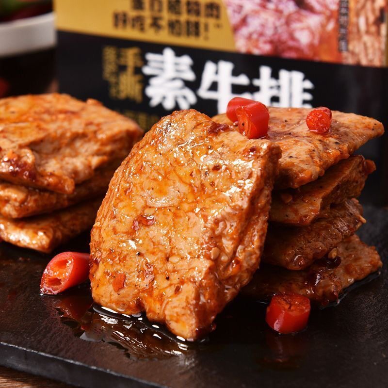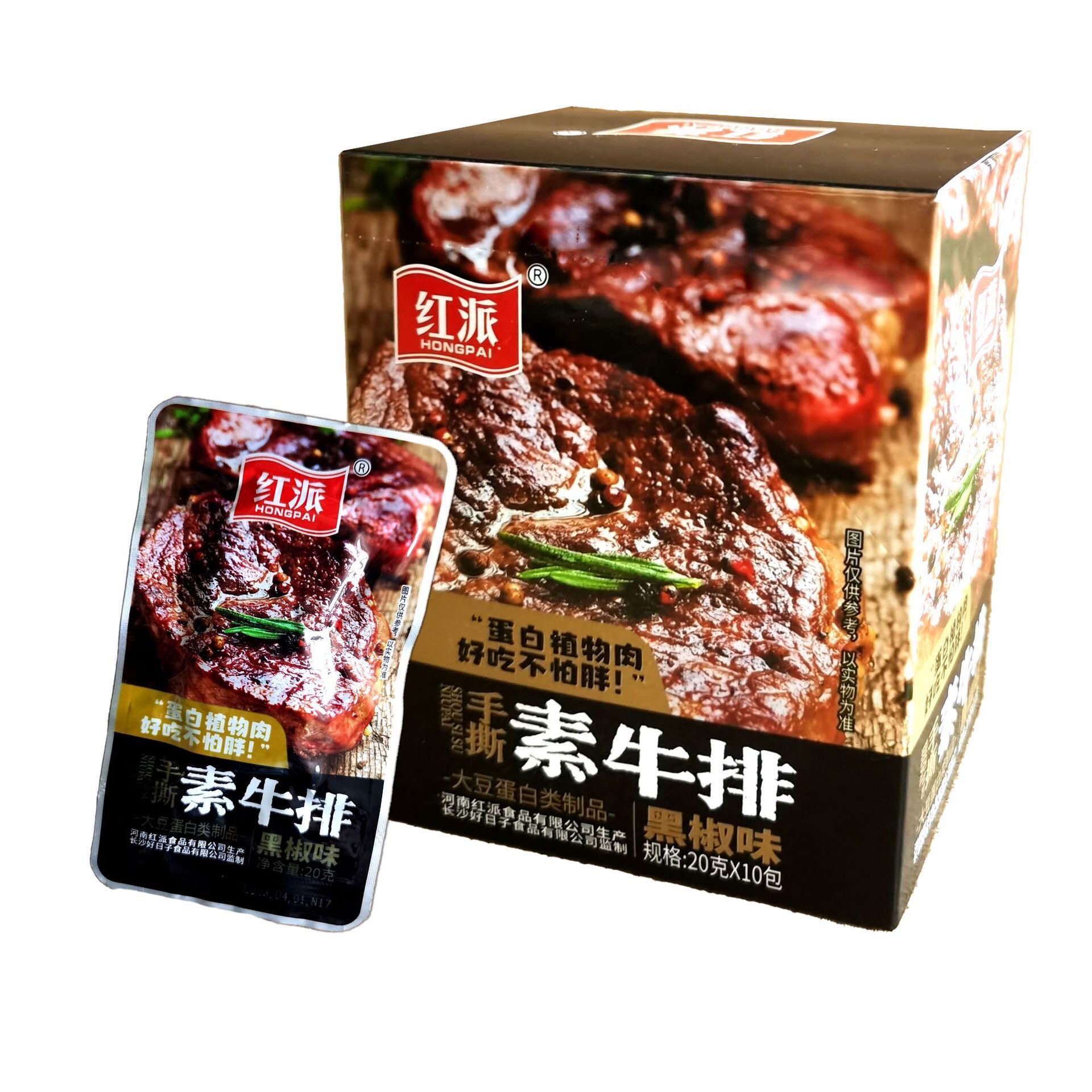 红派手撕素牛排20g*20包素肉盒装零食黑椒香辣味独立包装豆制品