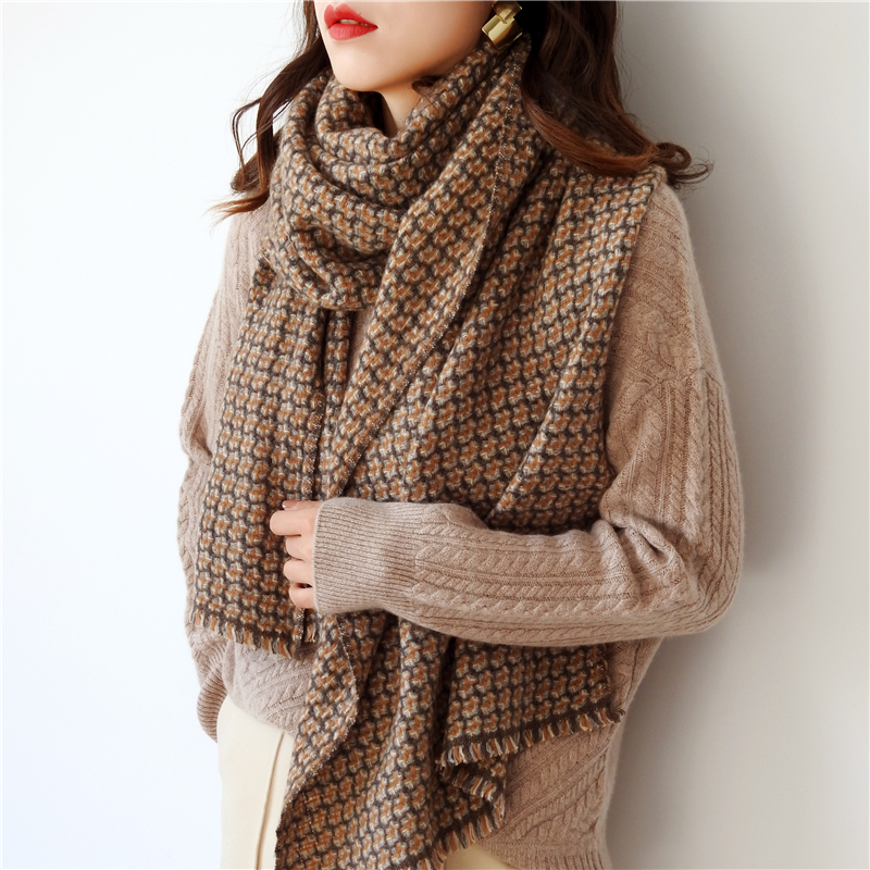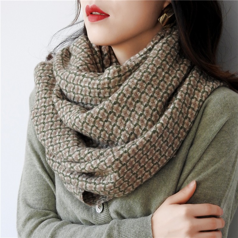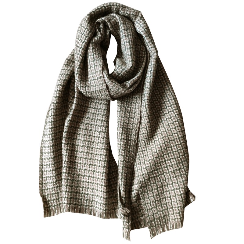 什么才叫好东西?体验便知!重磅厚款绿色山羊绒提花围巾男女冬季
