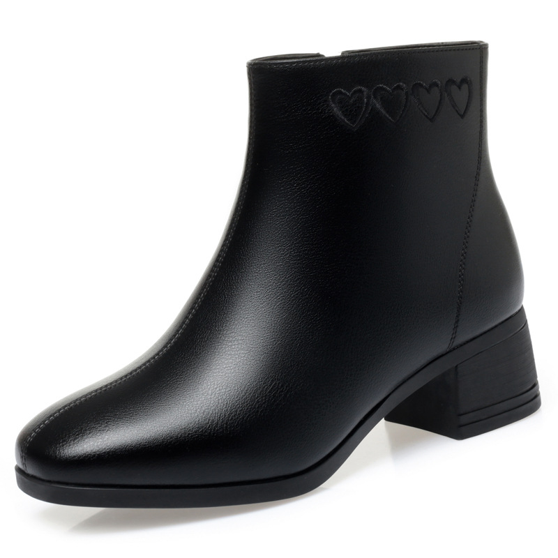 官方特卖正品冬季加厚加绒女士时装女靴圆头粗跟中跟短筒保暖抗寒