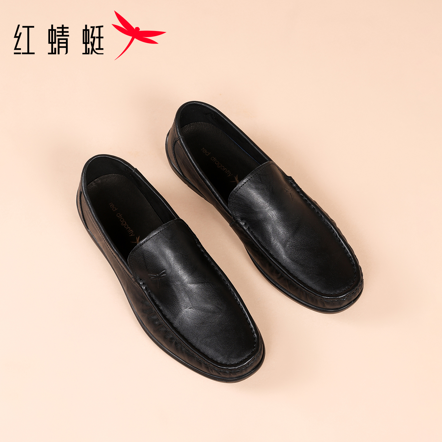 红蜻蜓男鞋新款鞋子男士一脚蹬懒人休闲皮鞋豆豆鞋男真皮软皮软底