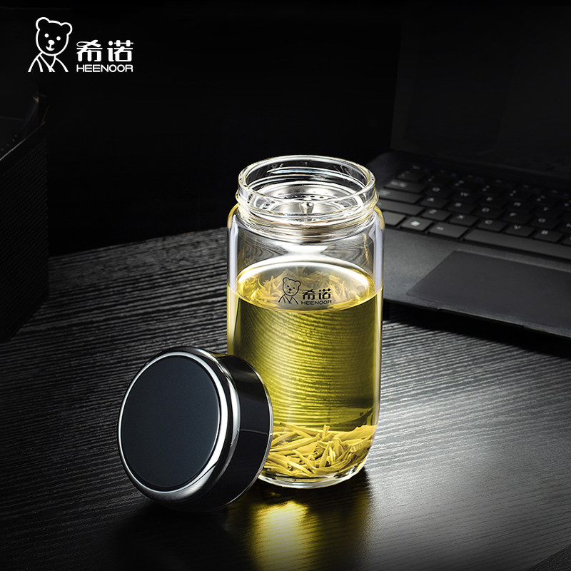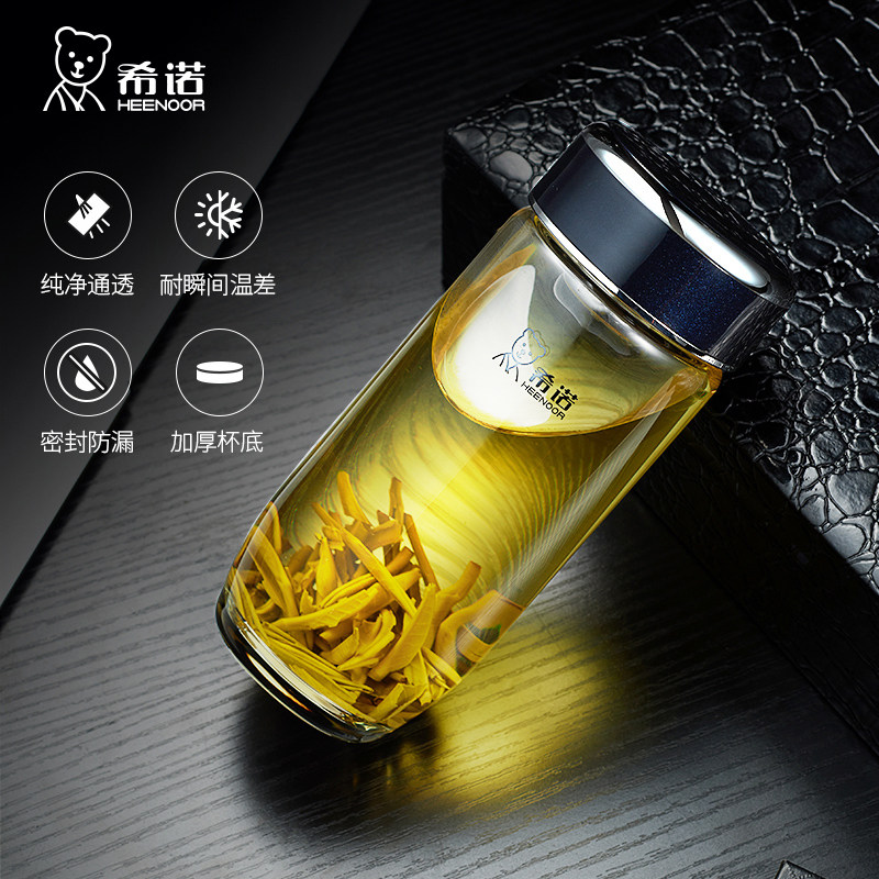 希诺玻璃杯单层加厚鹅蛋杯便携男士商务车载泡茶杯带滤网XN7716