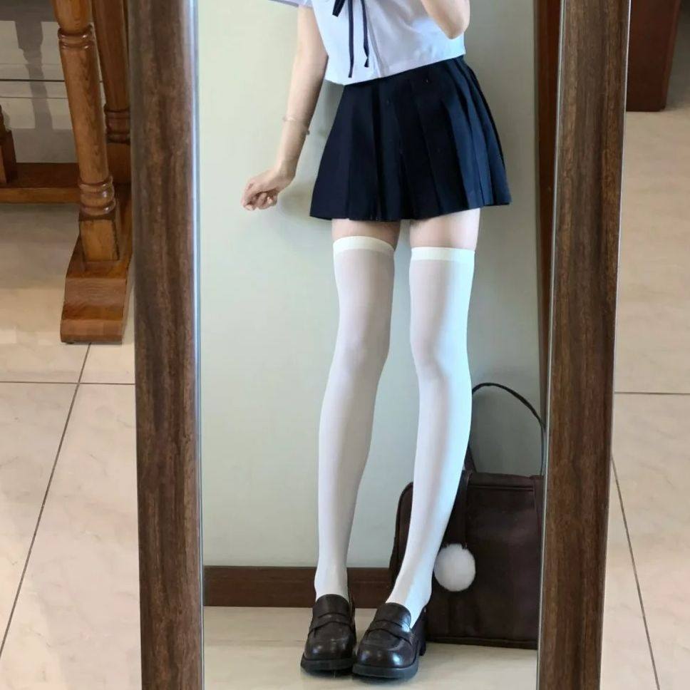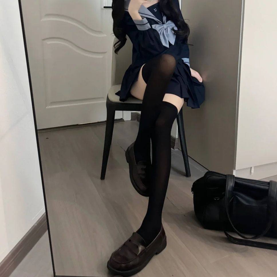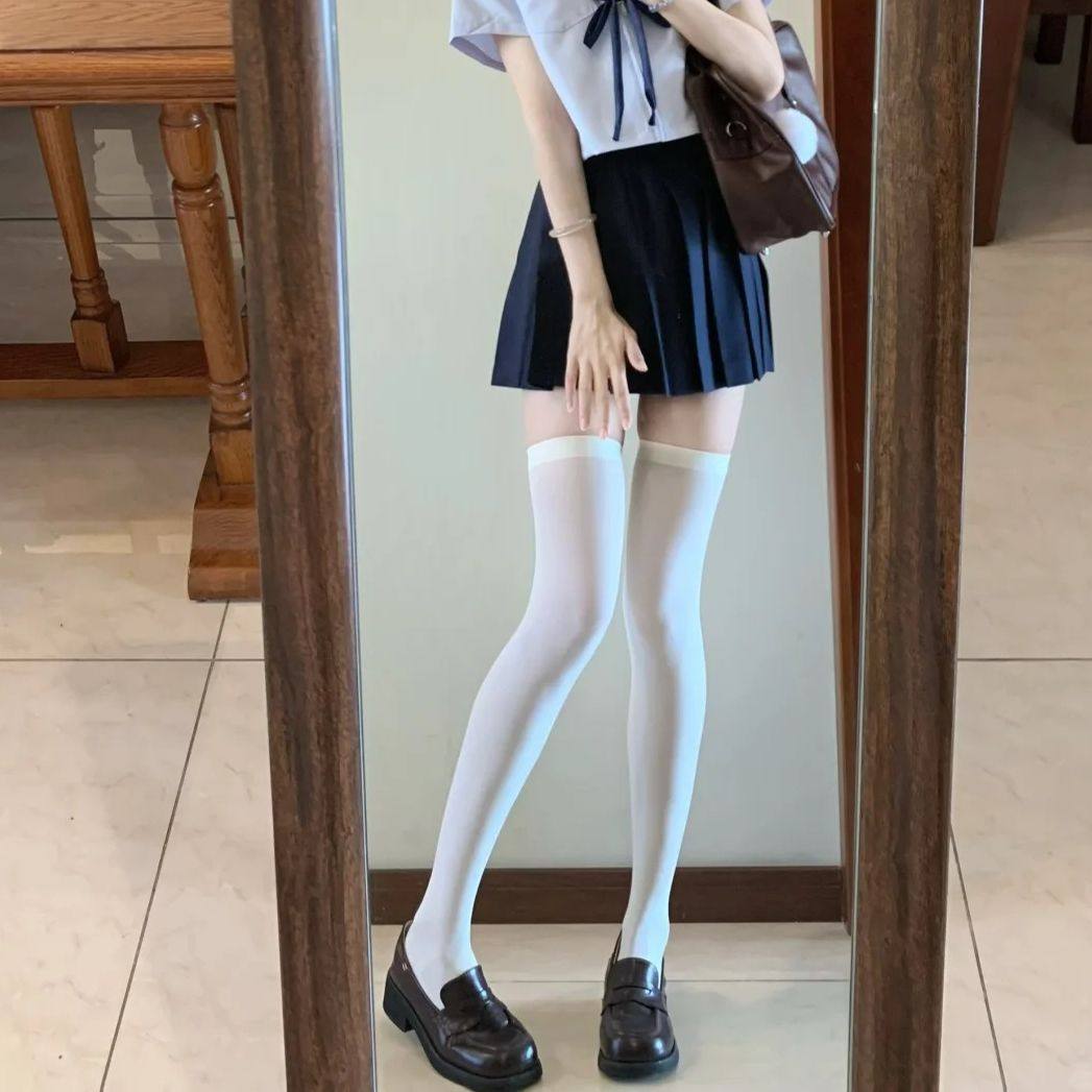 韩系黑色小腿袜女天鹅绒春夏薄款中筒袜丝袜长筒白色jk袜子过膝袜