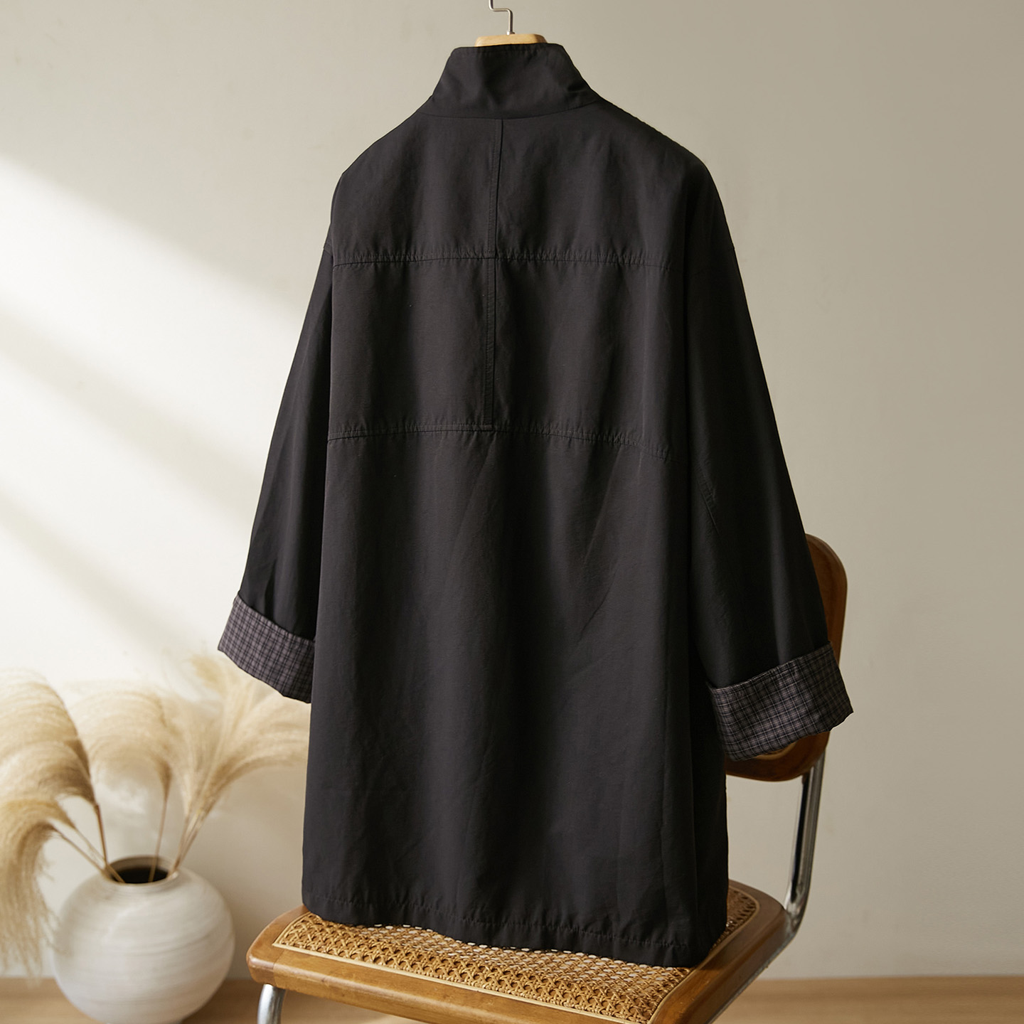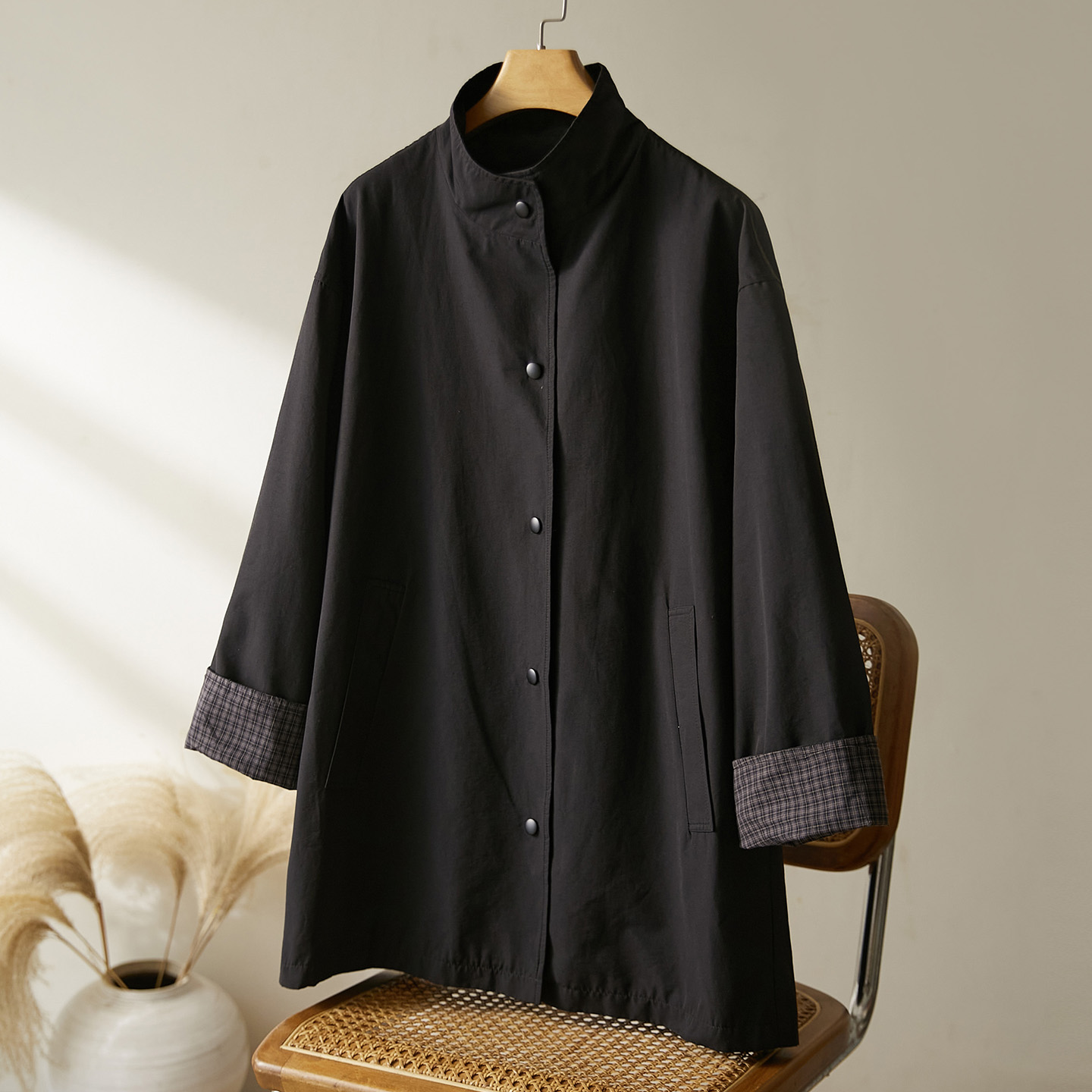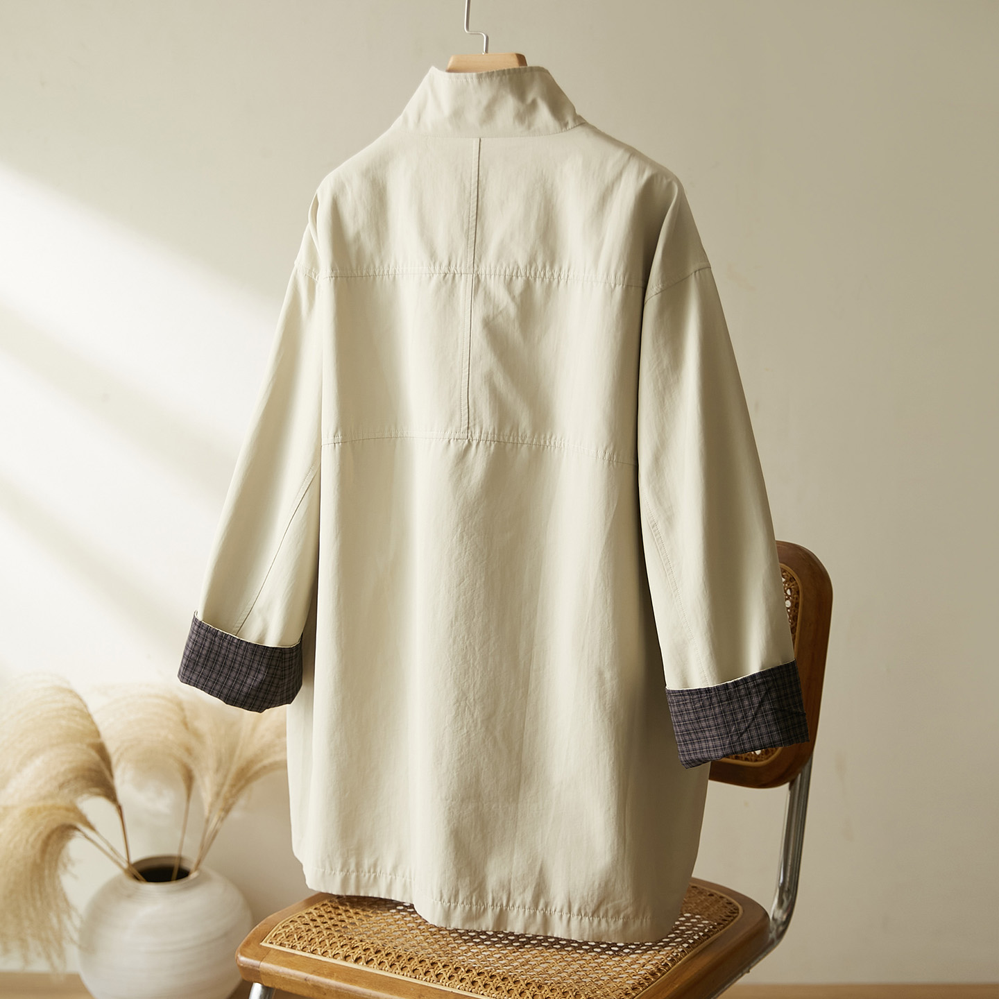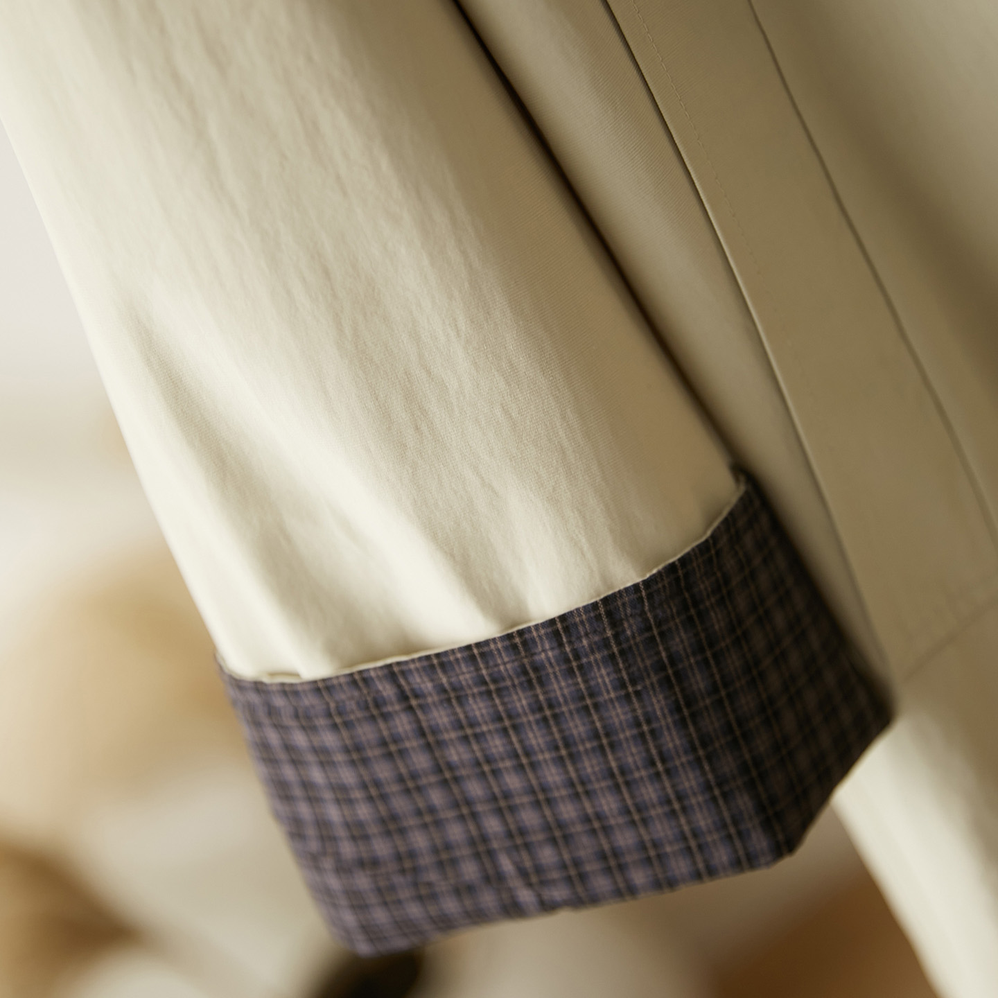 初影 立领风衣女中长款2025早秋新款通勤韩版袖拼格子工装风衣