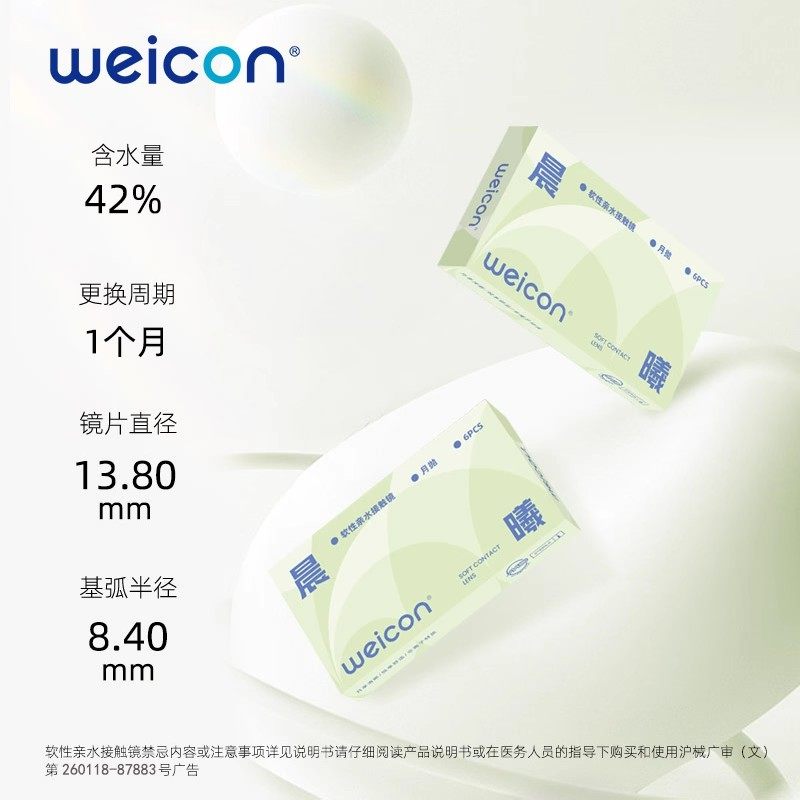 【新品】卫康晨曦月抛透明近视隐形眼镜6片装水凝胶透明片正品