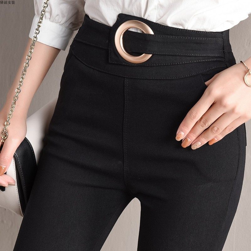 秋冬高腰过肚脐紧身收腹显瘦大码胖MM黑色小脚薄绒女外穿打底裤子
