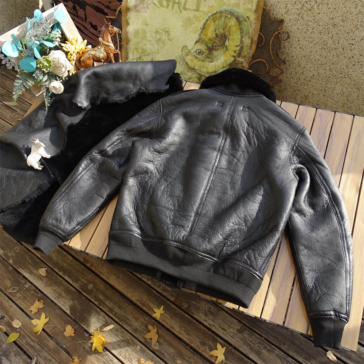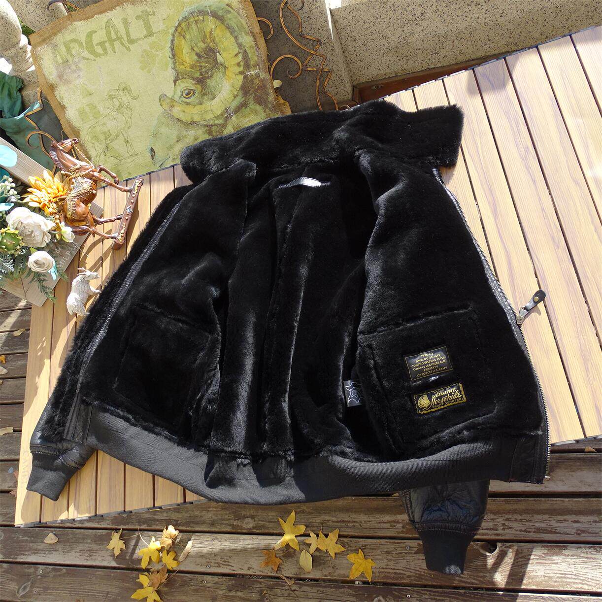 水洗复古A2皮草空军夹克原生态羊皮毛一体真皮外套保暖飞行服皮衣