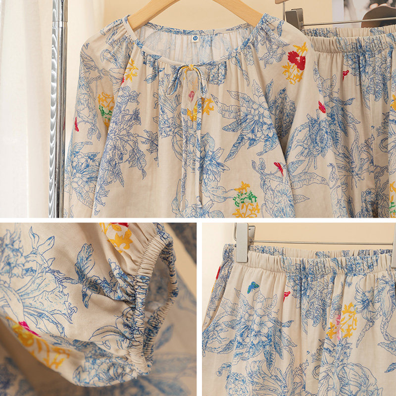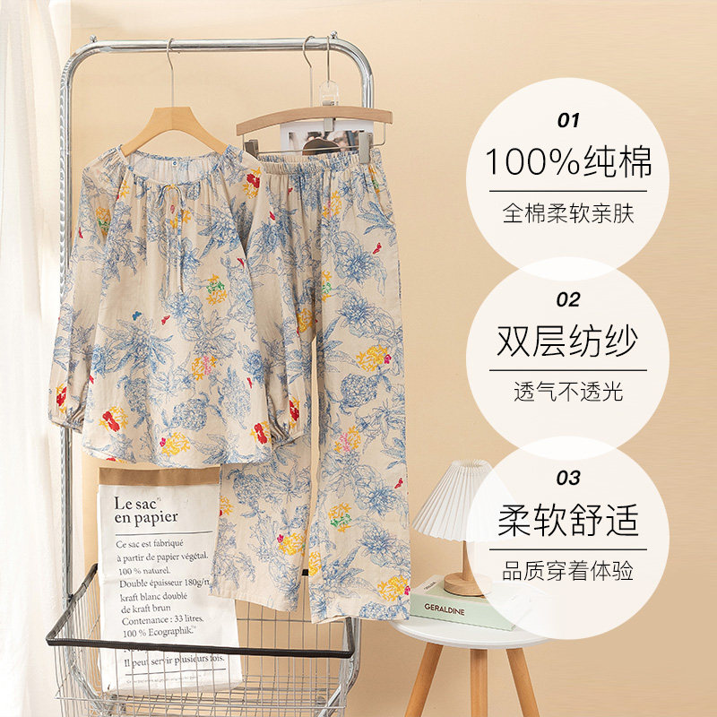 【自营】toratani纯棉双层纱亲肤柔软高级油画印花女士家居服睡衣