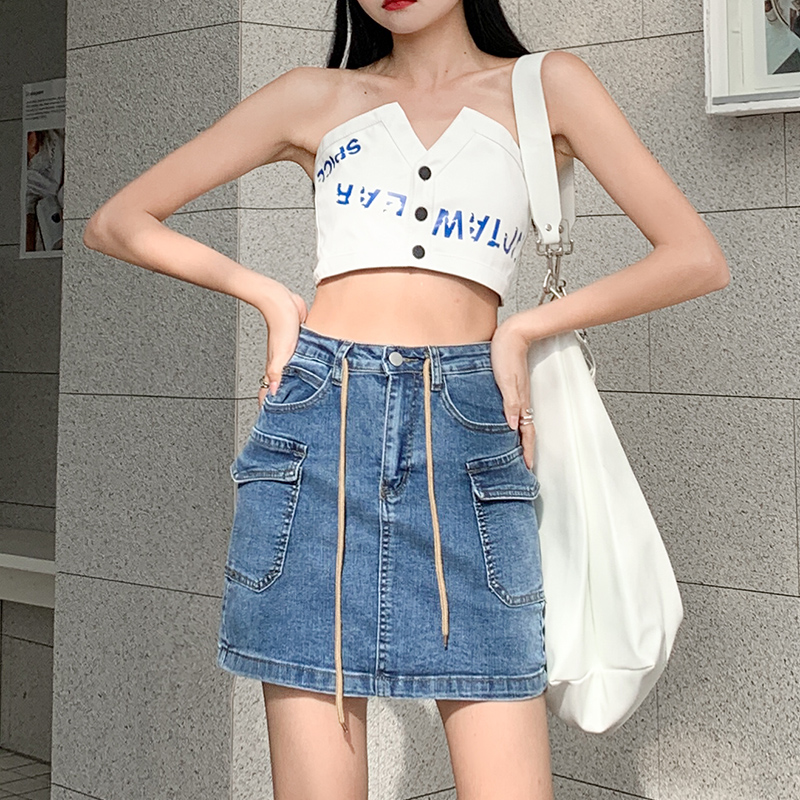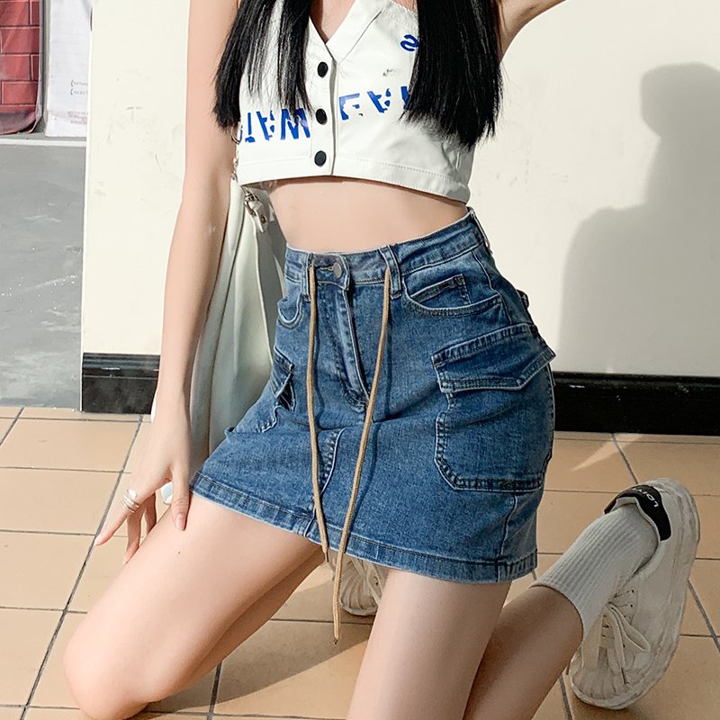 蓝色牛仔裙a字半身裙女2025年夏季新款设计感高腰显瘦包臀超短裙
