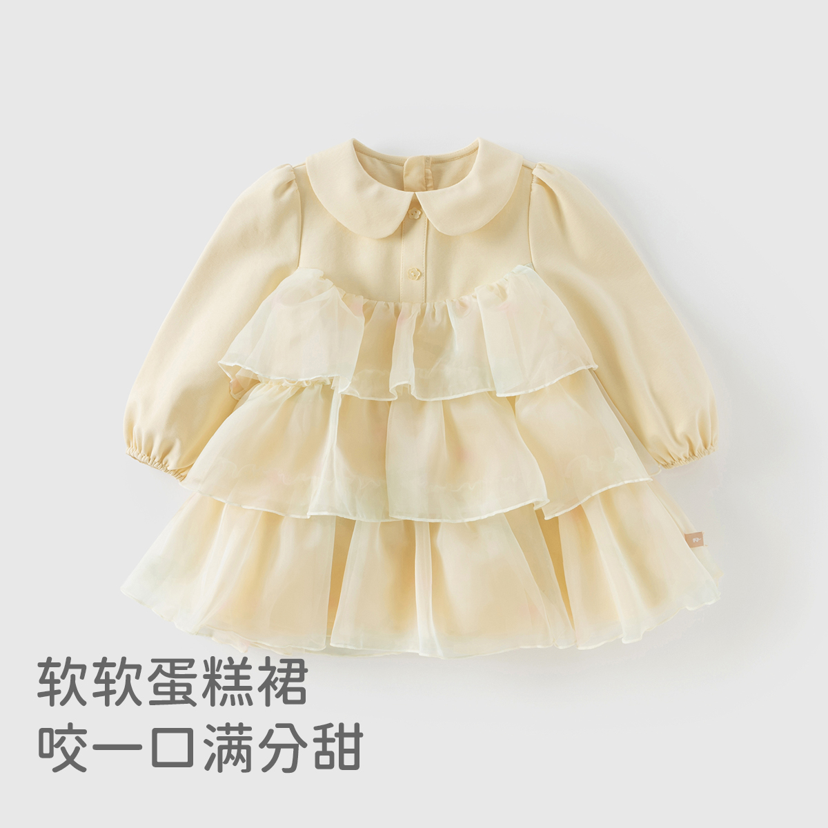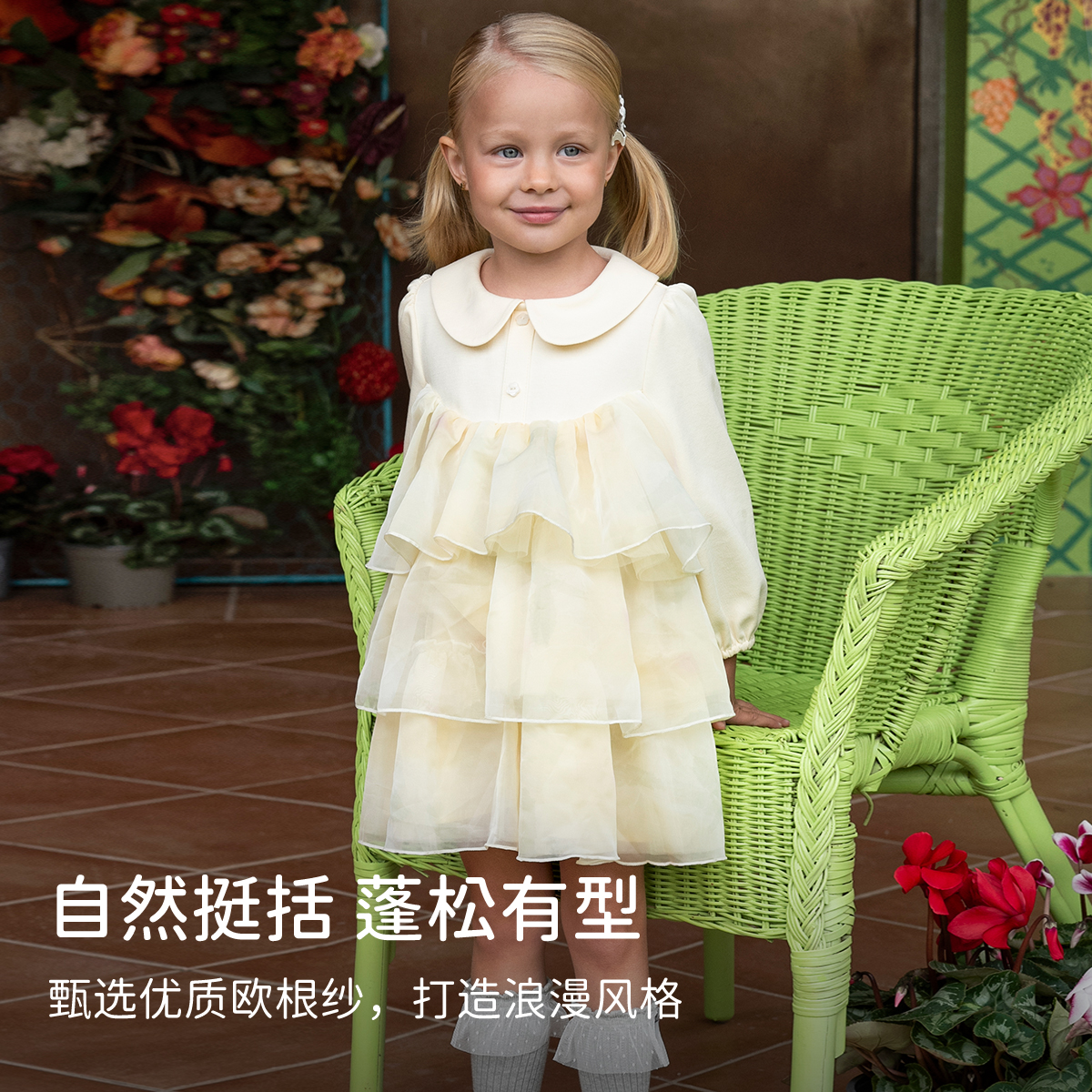 戴维贝拉儿童裙子2025秋装新款女童宝宝甜美网纱公主蛋糕裙连衣裙