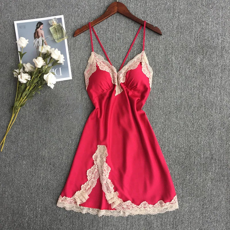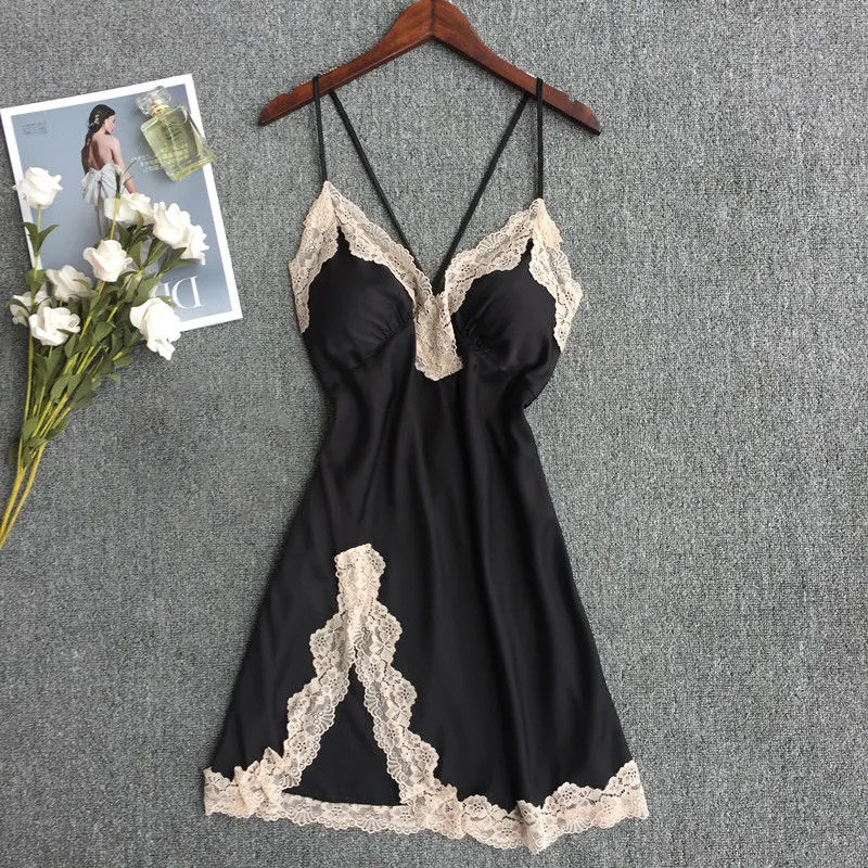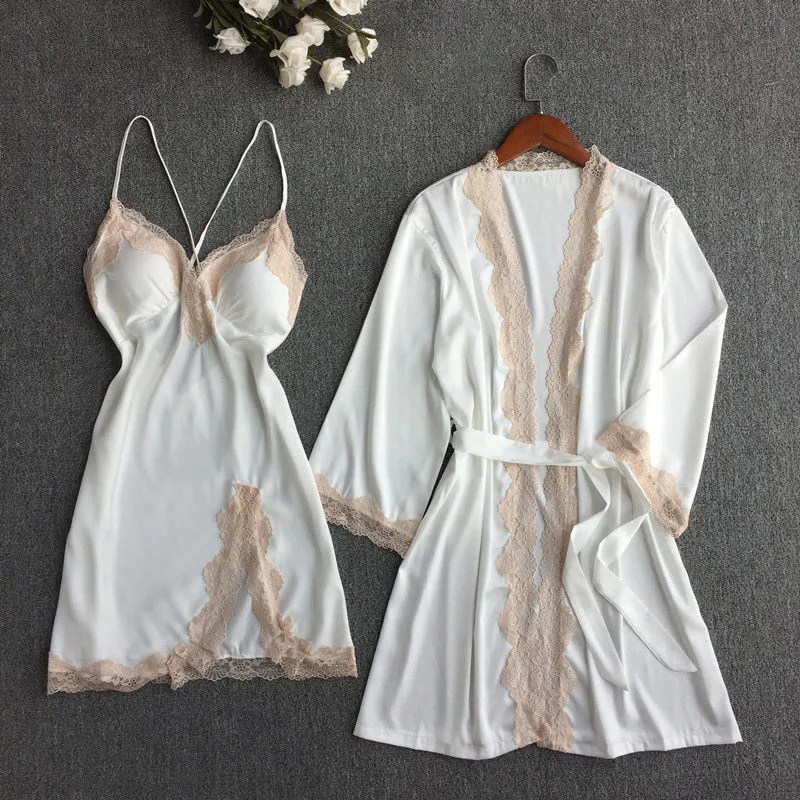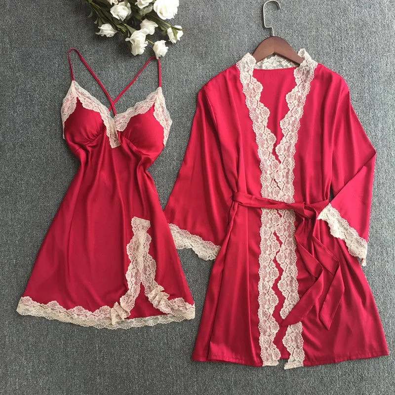 大码性感冰丝蕾丝吊带睡裙浴袍