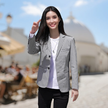 春秋季新款小西装男士韩版休闲时尚潮流格子西服外套