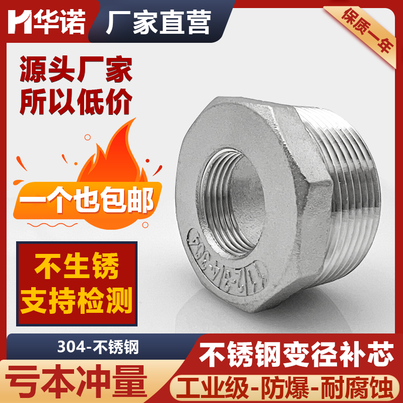 304补芯补心异径内外丝直接变径接头4分6分1寸螺纹管件转换配件